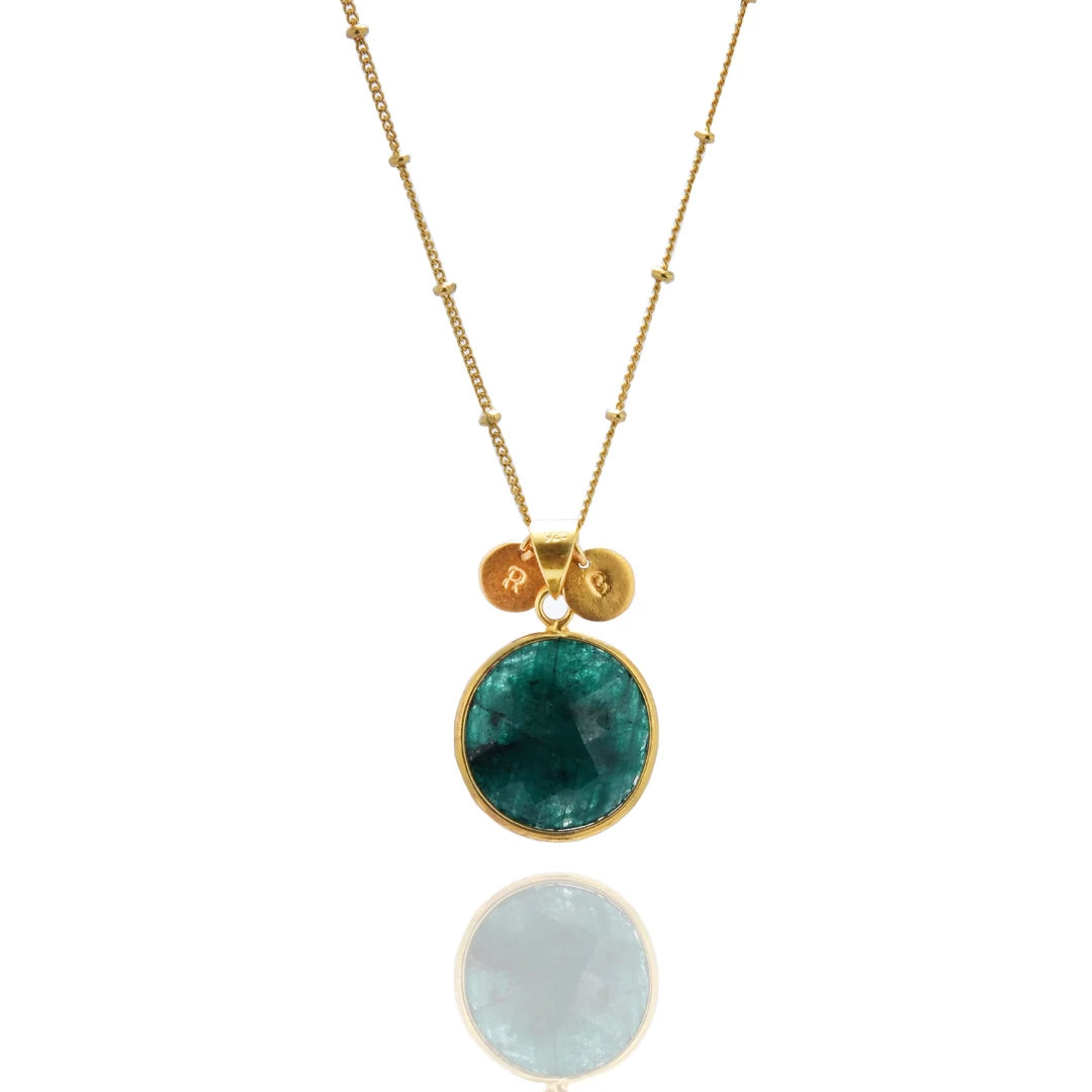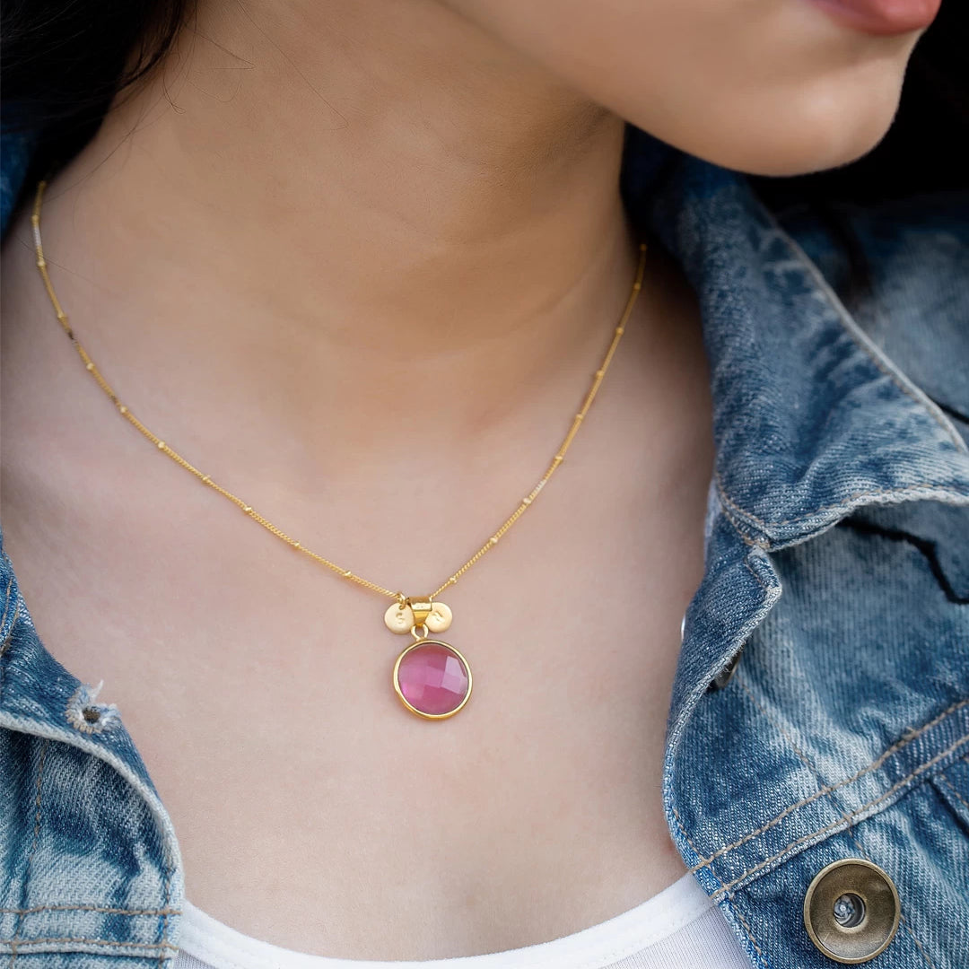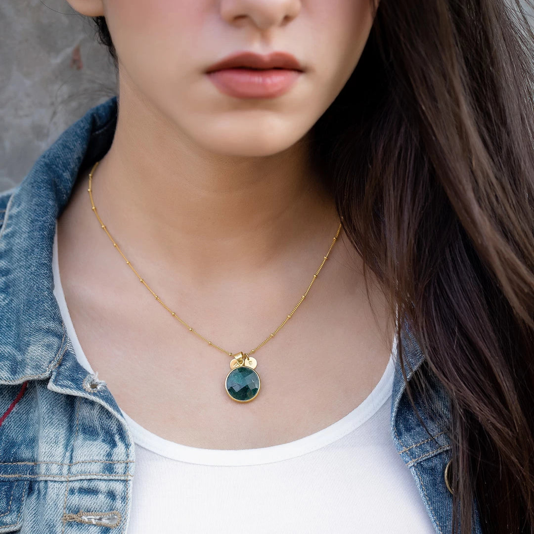 Personalized Jewelry Handcrafted by Artisans. Choose your birthstone from 12 natural stones and add custom initials to the necklace for a unique touch. Complete your set with matching bracelet and earrings. Elevate your style with our bespoke collection, tailored to you.