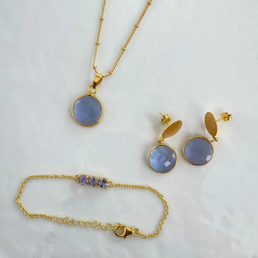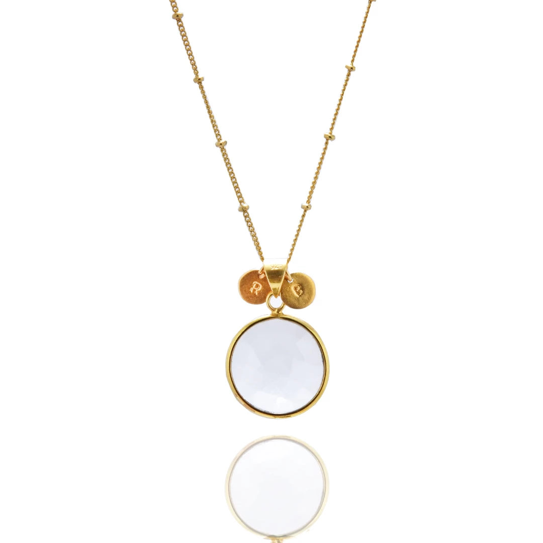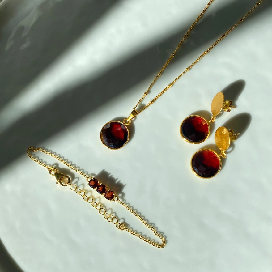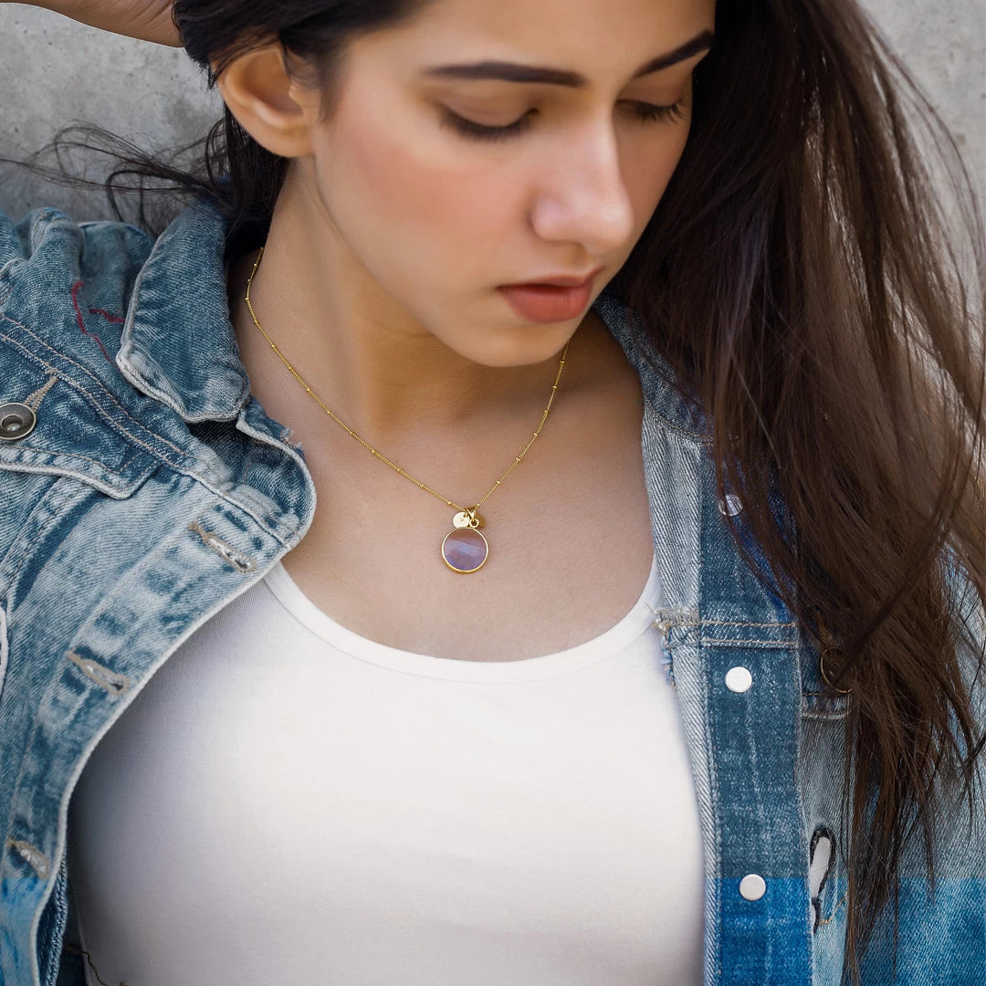 Personalized Jewelry Handcrafted by Artisans. Choose your birthstone from 12 natural stones and add custom initials to the necklace for a unique touch. Complete your set with matching bracelet and earrings. Elevate your style with our bespoke collection, tailored to you.