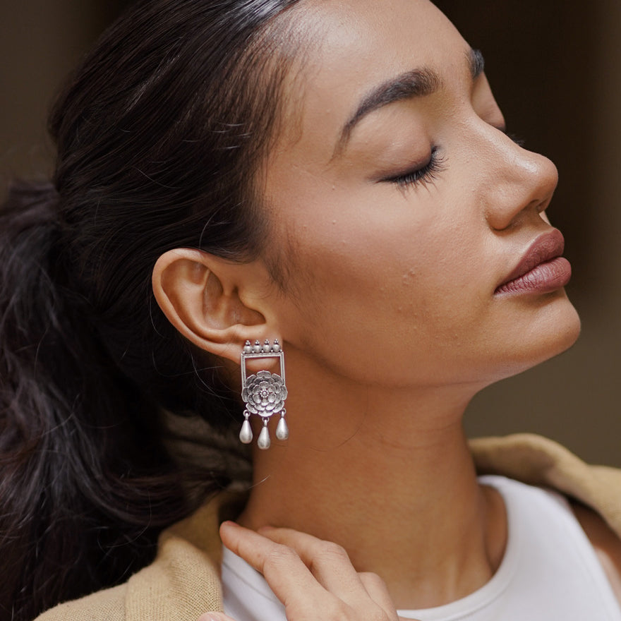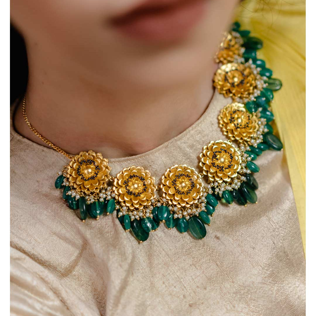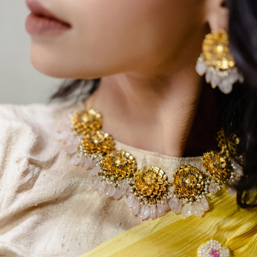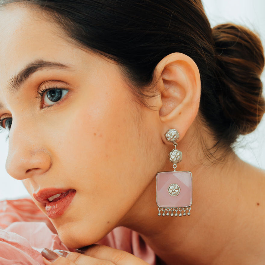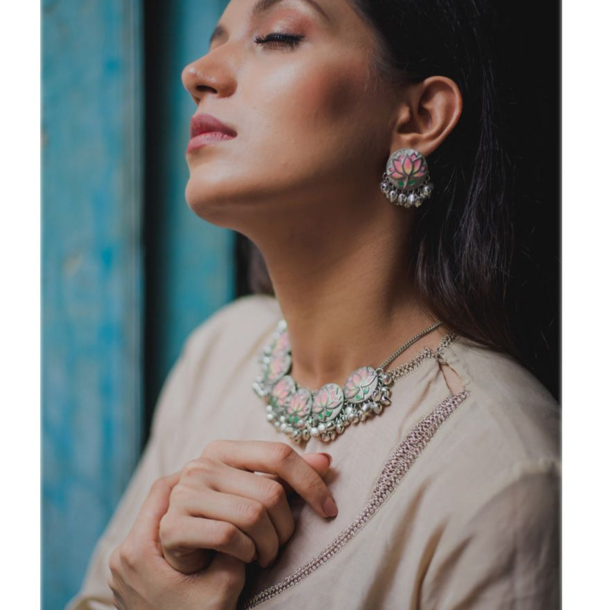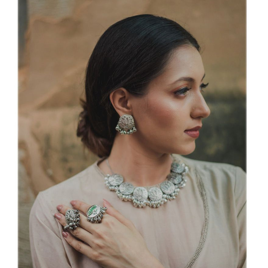 Inspired by Floral Elegance. Handcrafted by Skilled Artisans using Agate Stones from Khambhat, India. Crafted with plated silver, these contemporary jewelry pieces are perfect for festive wear. Explore the beauty of nature with our exquisite designs, meticulously crafted to adorn every occasion.