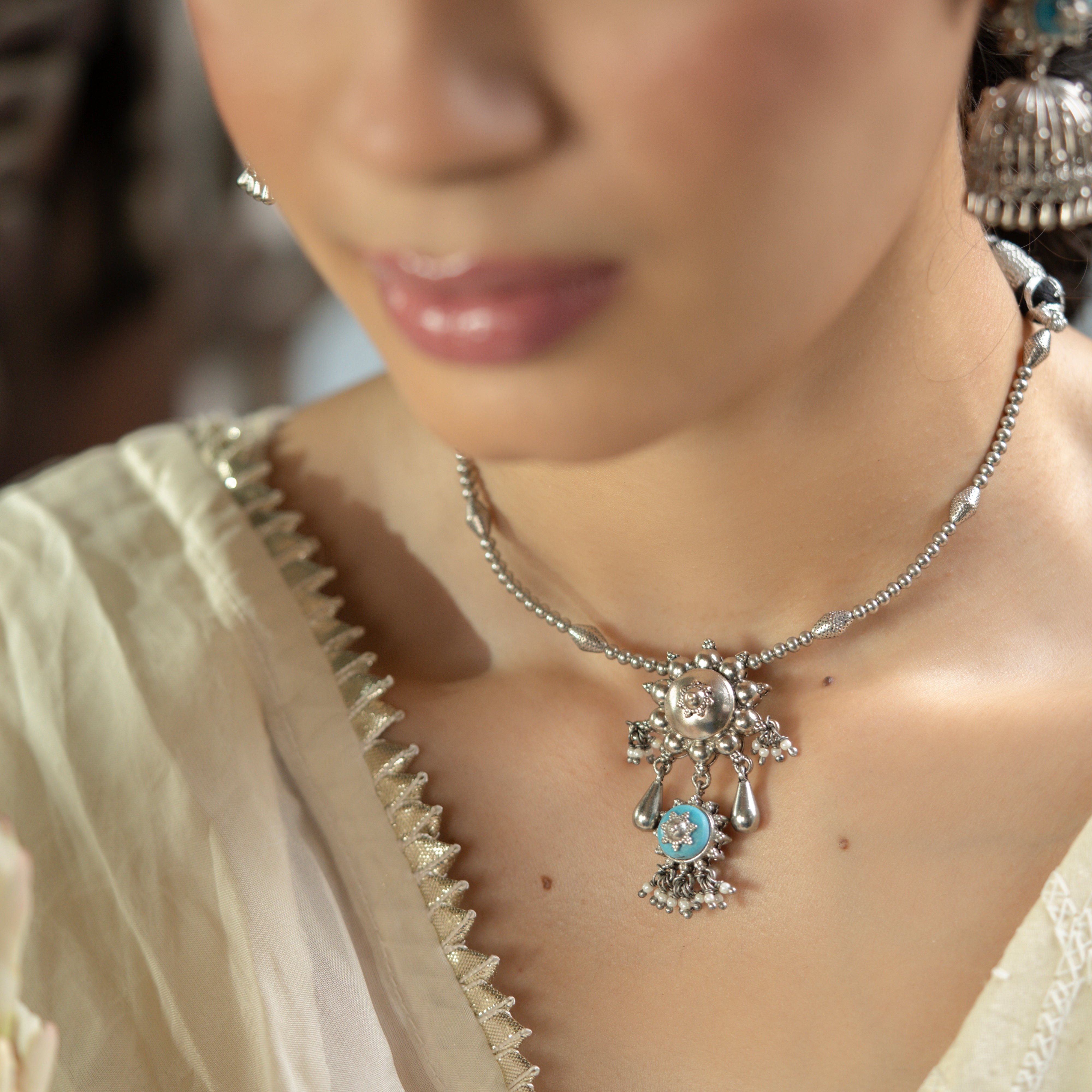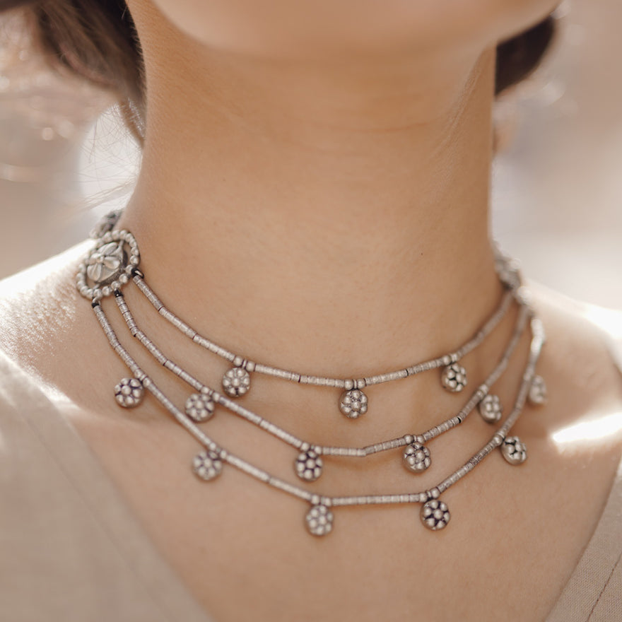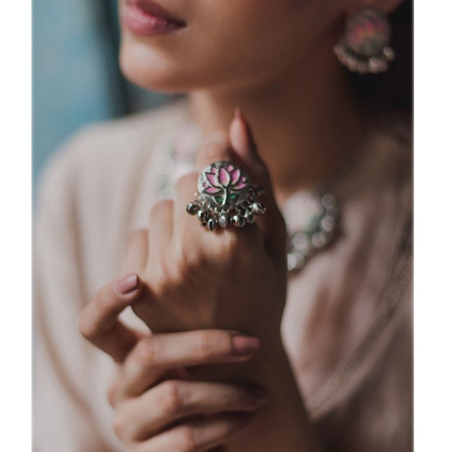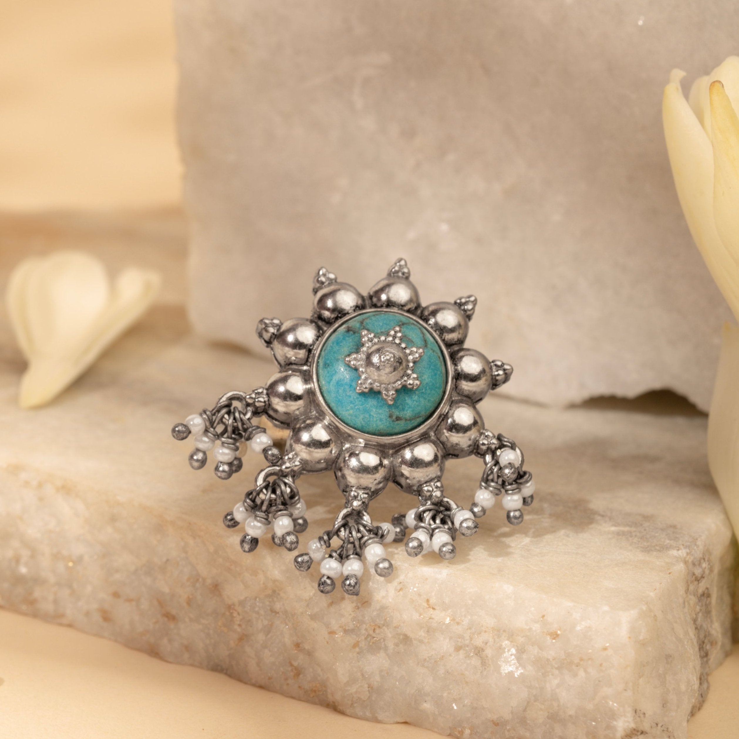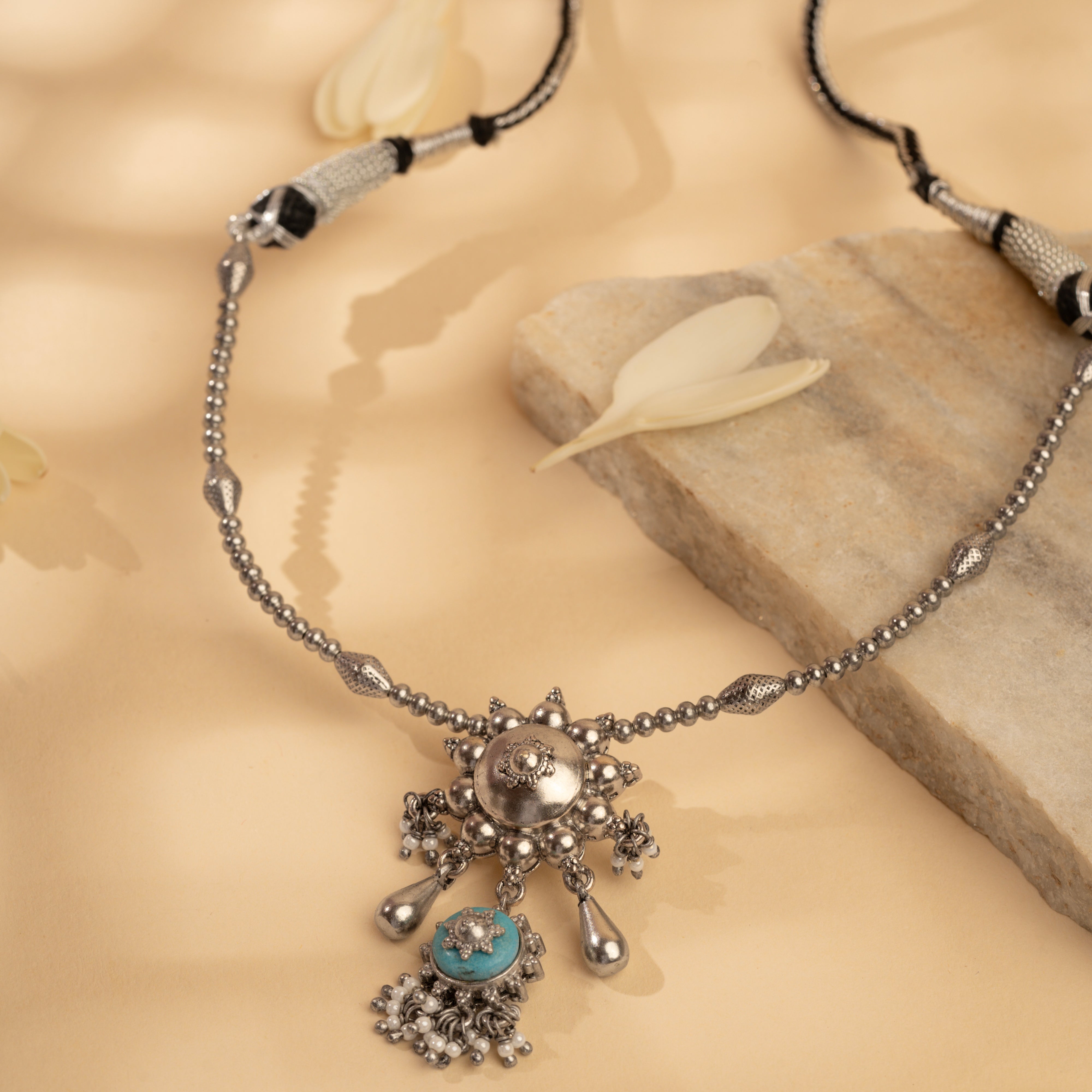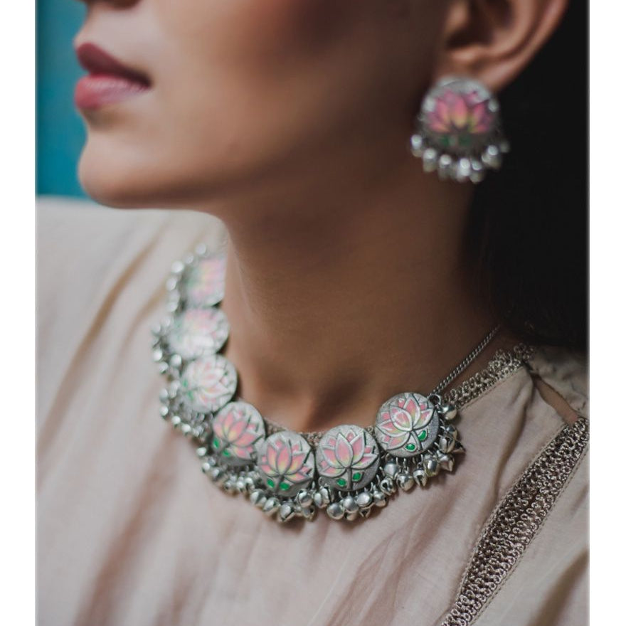 Inspired by Floral Elegance. Handcrafted by Skilled Artisans using Agate Stones from Khambhat, India. Crafted with plated silver, these contemporary jewelry pieces are perfect for festive wear. Explore the beauty of nature with our exquisite designs, meticulously crafted to adorn every occasion.