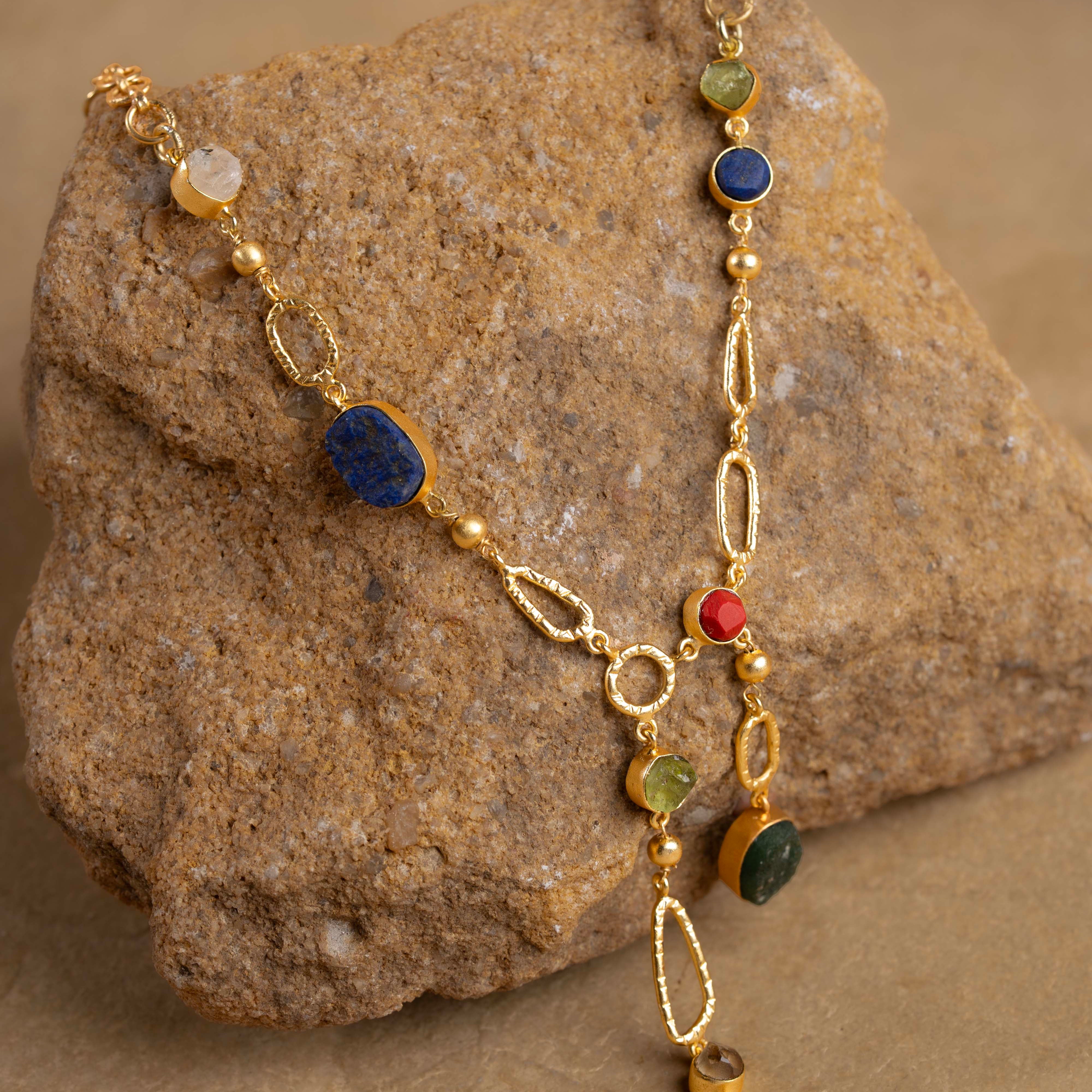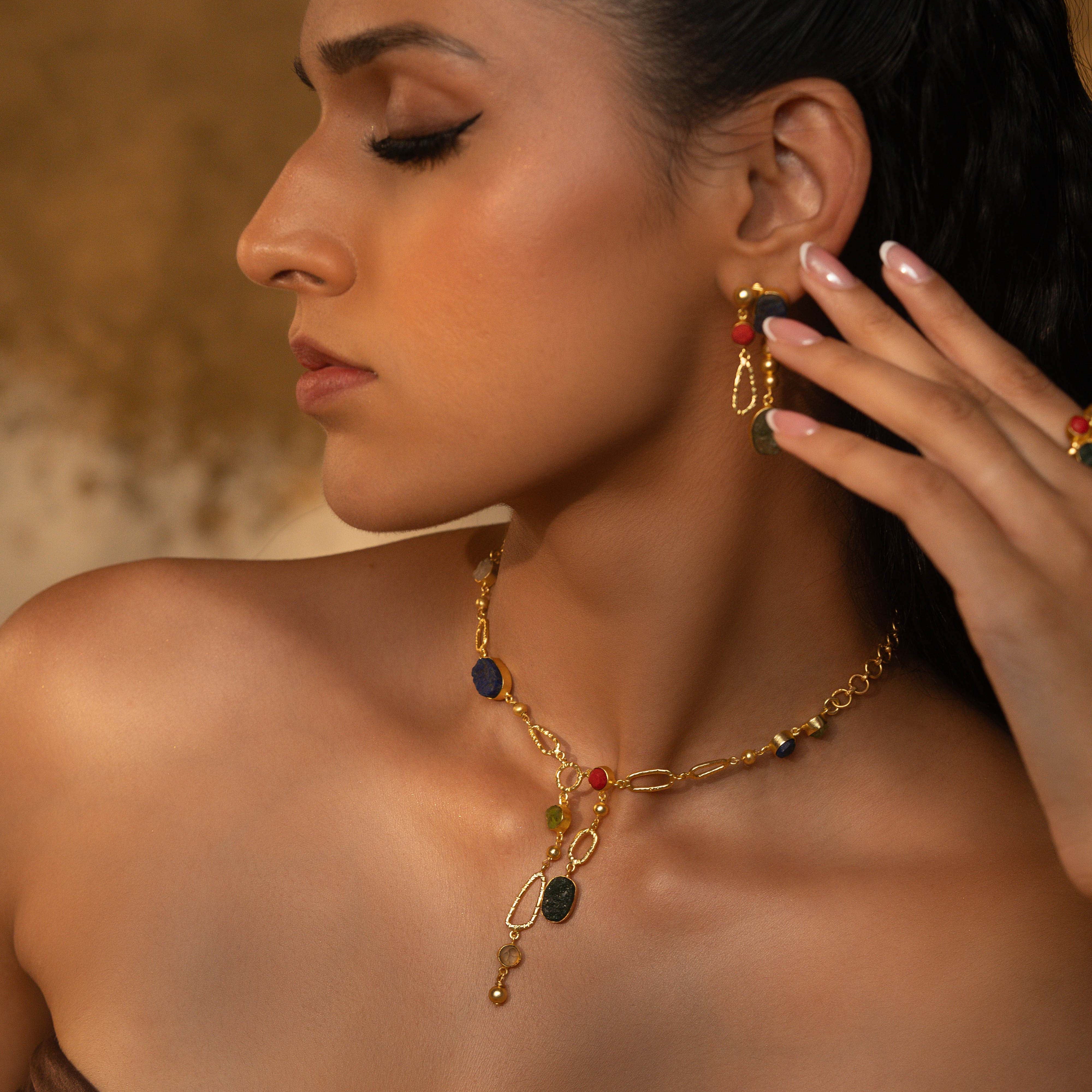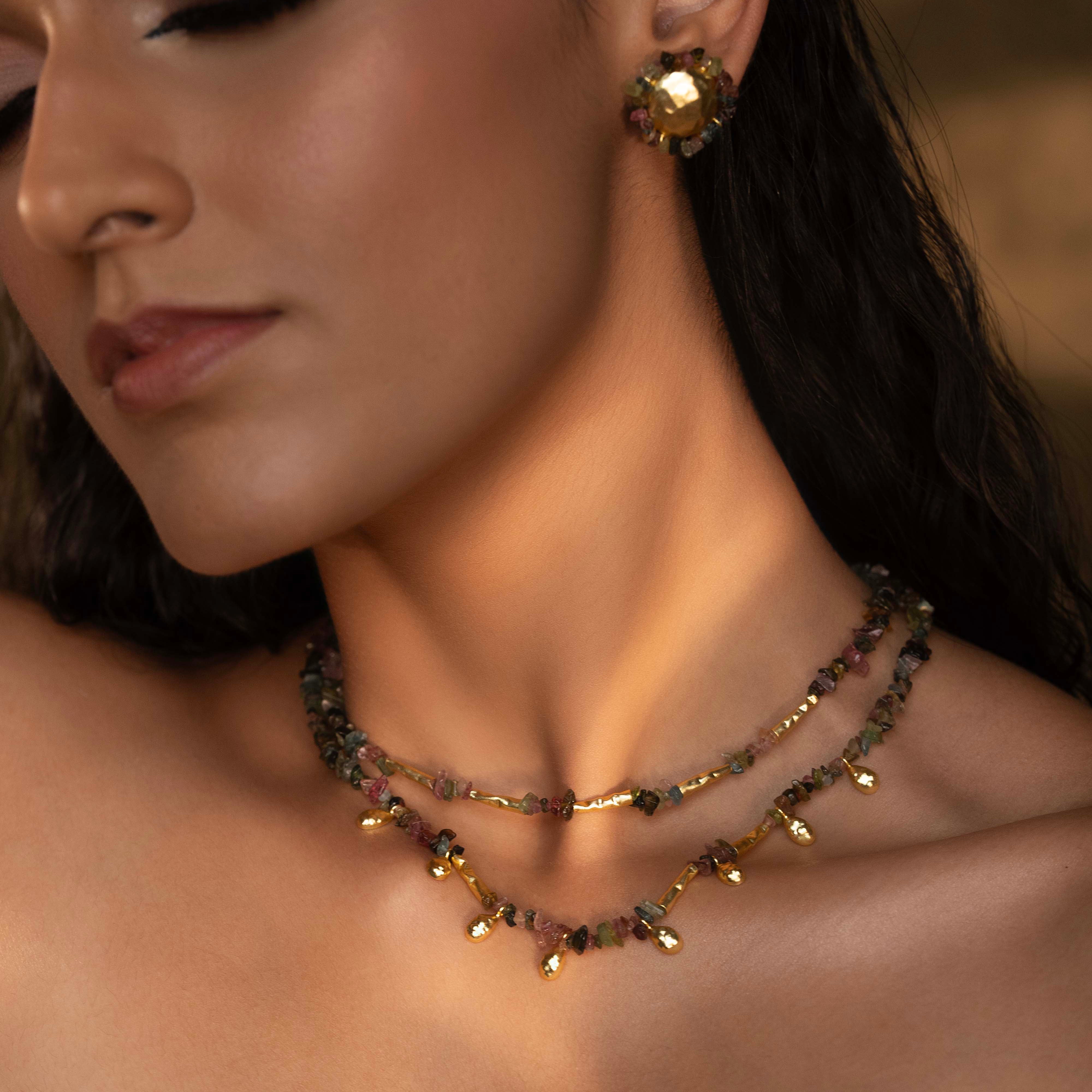 A Stunning Jewelry Collection Inspired by Nature's Treasures. Handpicked from Jaipur, India, these natural gemstones adorn classic silhouettes, offering timeless elegance. Crafted by skilled artisans, each piece captures the essence of Indian craftsmanship. Elevate your wardrobe with Gemma - a must-have capsule collection for every jewelry lover.