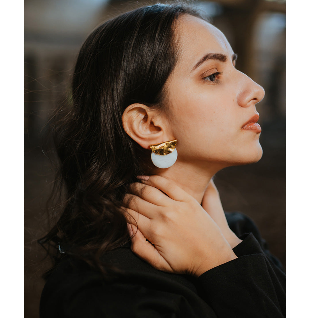 Aaida Studs Big – Handcrafted statement making studs made using 1 micron gold plated brass covered on the natural mother of pearl shell. From our limited collection ECHO.