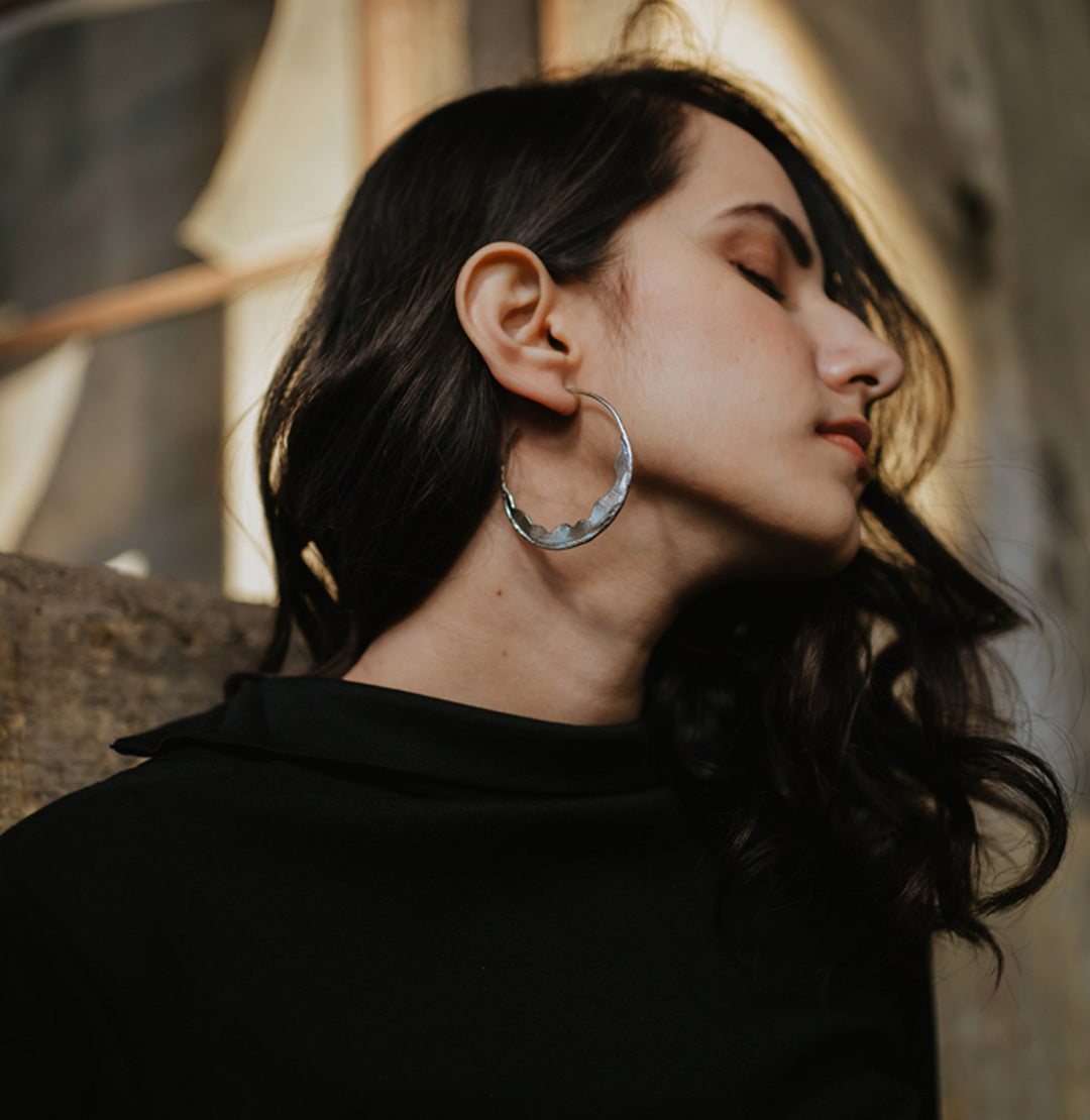 Aina Hoops Silver – Handcrafted hoops made using silver plated brass with beaten metal technique, a must have design for every style.