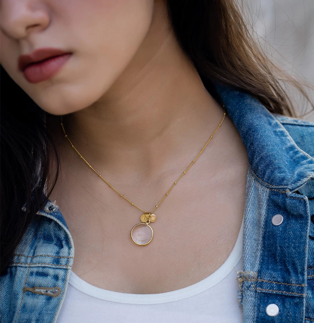 Handcrafted necklace made out of crystal stone in 925 pure silver and 18k gold plating. You can personalize it by adding two initials in the necklace. A perfect gift to someone you love or yourself.