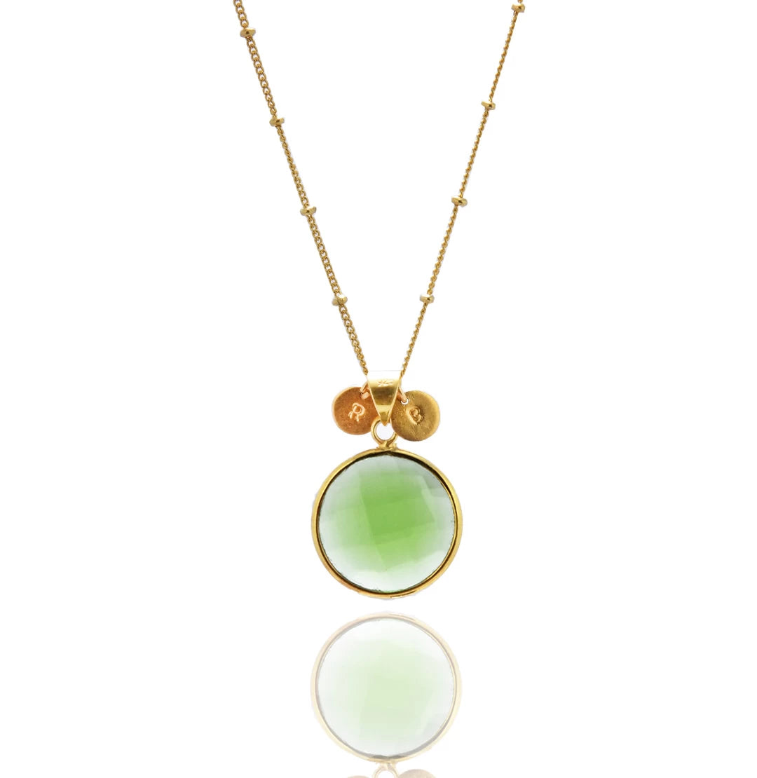 Handcrafted necklace made out of Peridot stone in 925 pure silver and 18k gold plating. You can personalize it by adding two initials in the necklace. A perfect gift to someone you love or yourself.
