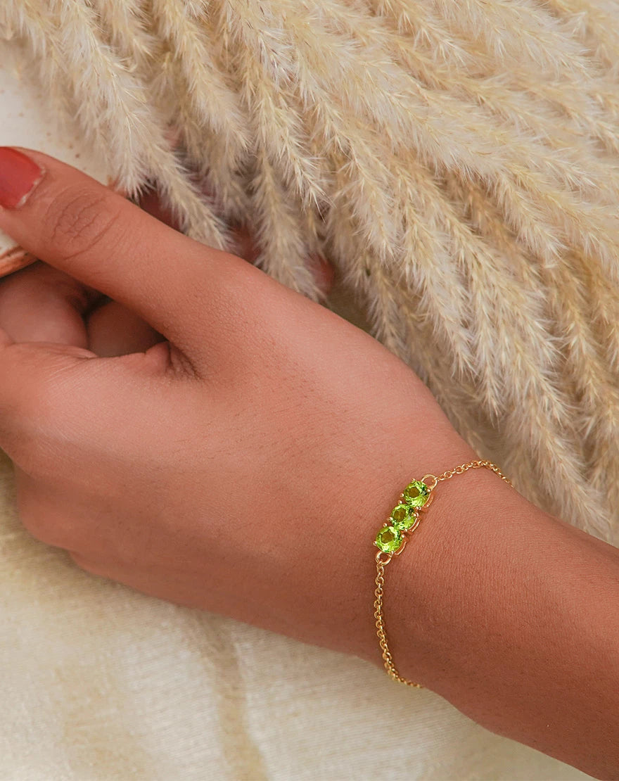 This beautiful combo of Anastasia collection of Necklace + earrings + bracelet handmade using Peridot birthstone, 18k gold plated 925 silver which will make a perfect gift for your loved one or just for yourself.