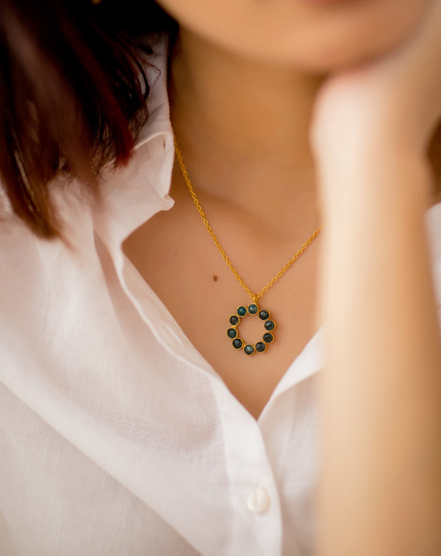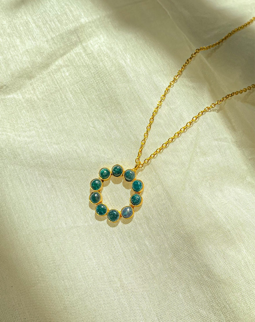 Chloe means blossom. This beautiful and dainty necklace is handmade using finest emerald agate beads which is feather light in weight on 18k gold plated brass.