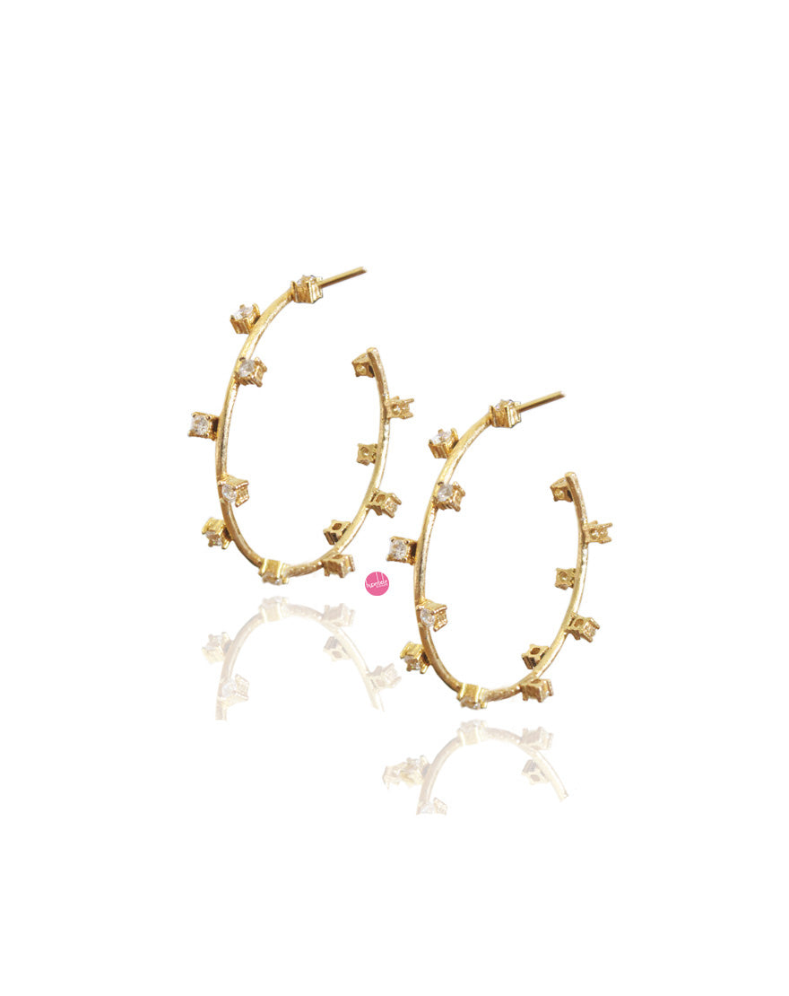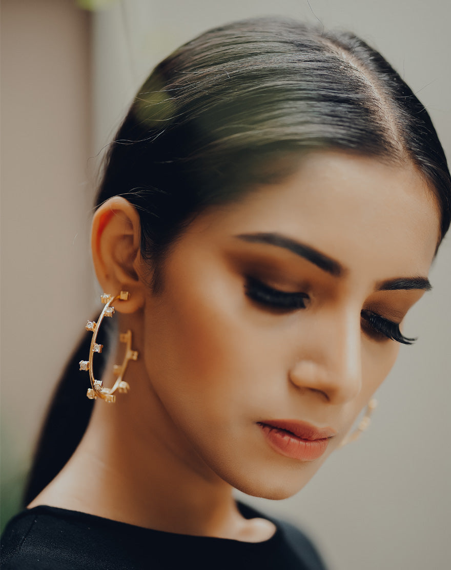 Crystal CZ Hoops : Statement making hoops handcrafted using czs and gold plated brass. Perfect for western wear outfits.