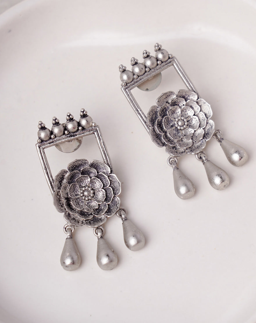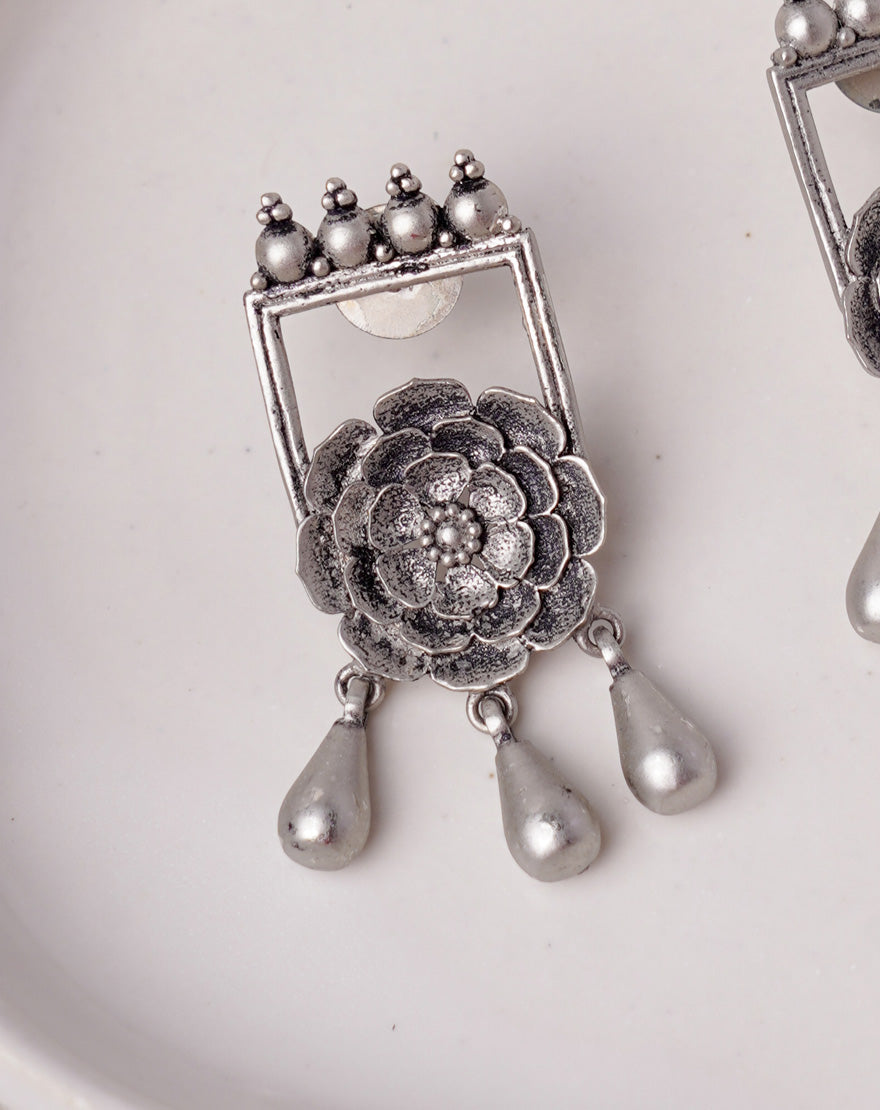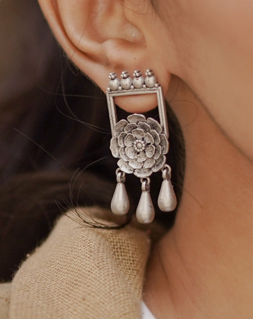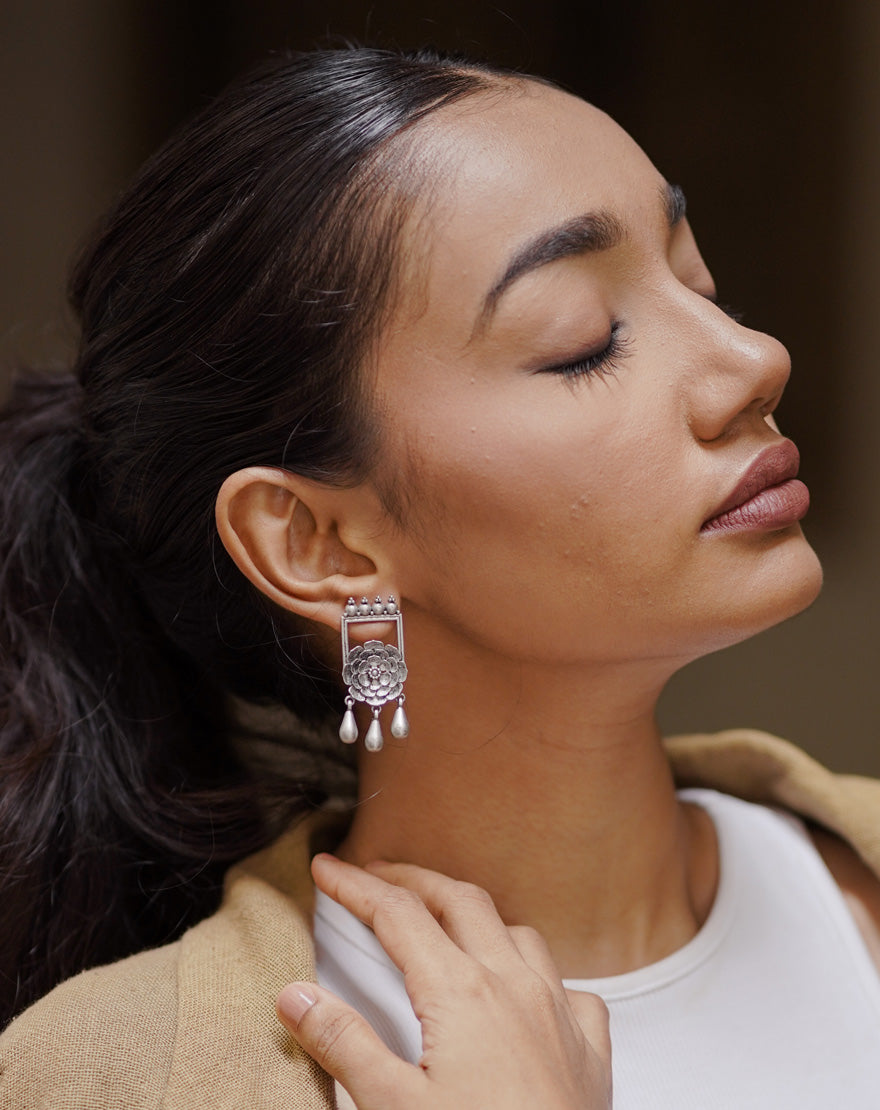 Our favorite design from the collection, the ‘Dvaar’ studs combine gunmetal-colored silver-finished brass motifs. Inspired by India’s historic palace doors, these studs stand out with their intricate craftsmanship and captivating motifs.