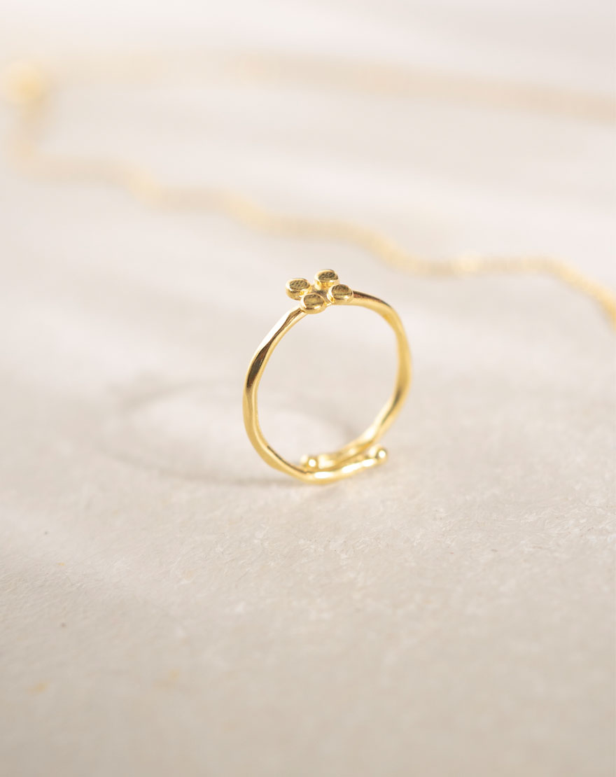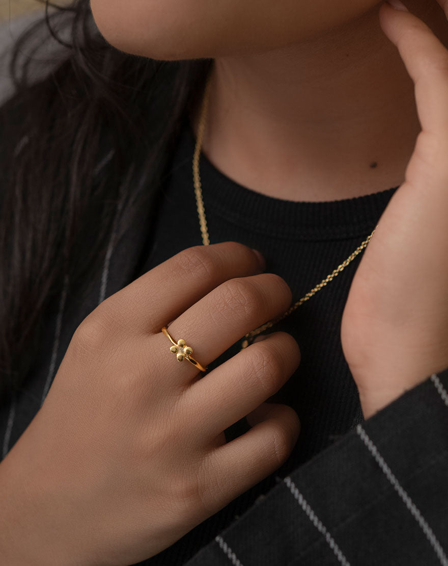 Farah means happiness in arabic. This dainty ring is handcrafted using 925 pure silver with 18k gold plating. This piece of jewelry is hypoallergenic and nickel free.