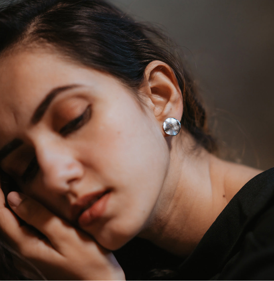 Faye Studs Silver – These beautiful handcrafted studs are made using silver plated brass and are perfect for work wear and party wear, as they are detachable. YES! you read it right they are detachable. You can separate the the top round earring and wear it as a small stud. While you can attach the bottom part for a statement look.