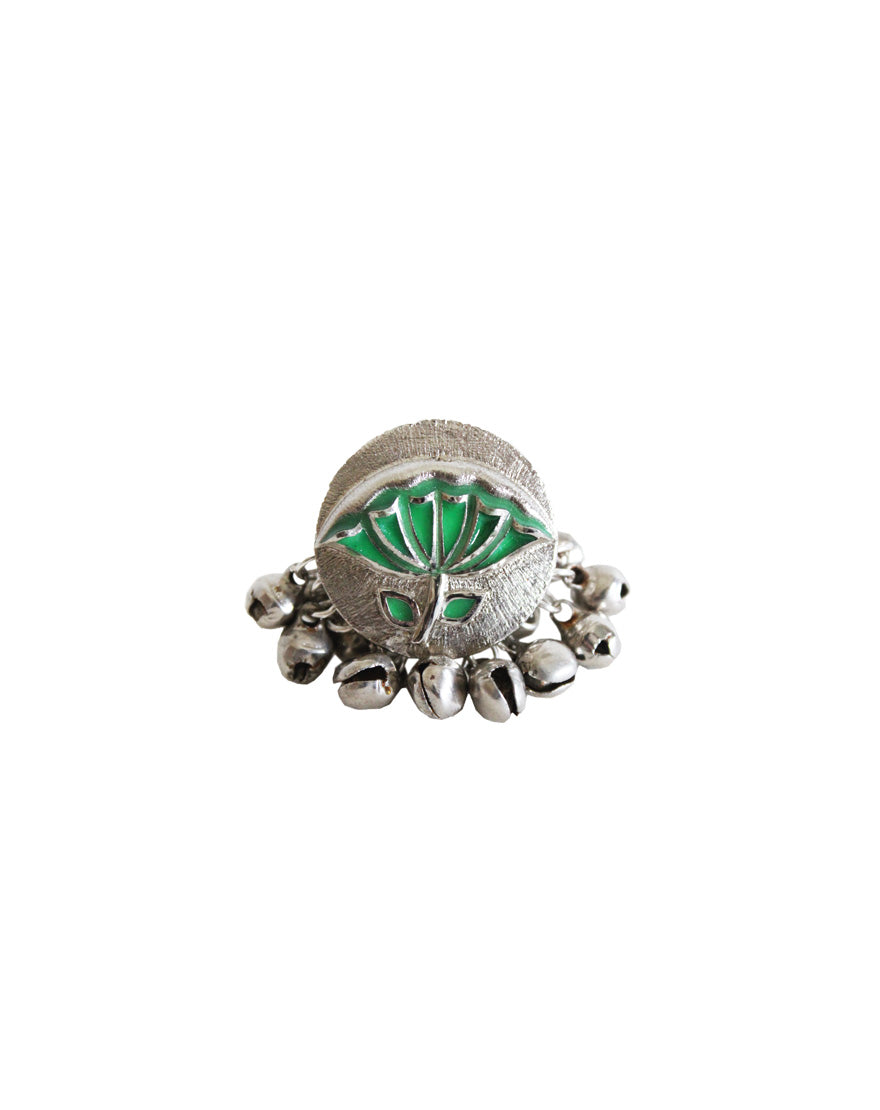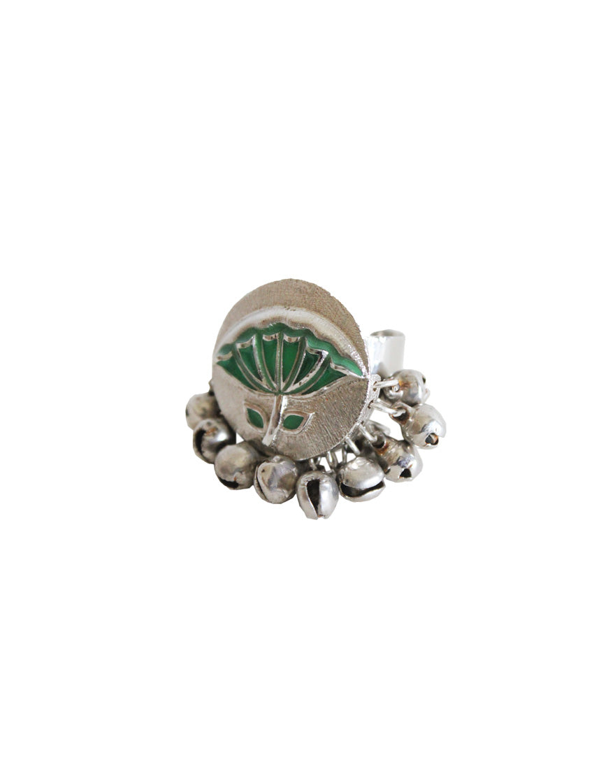Green Silver Lotus Leaf Ring : Handcrafted silver ring inspired from “Pichwai” motifs with handpainted enamel.