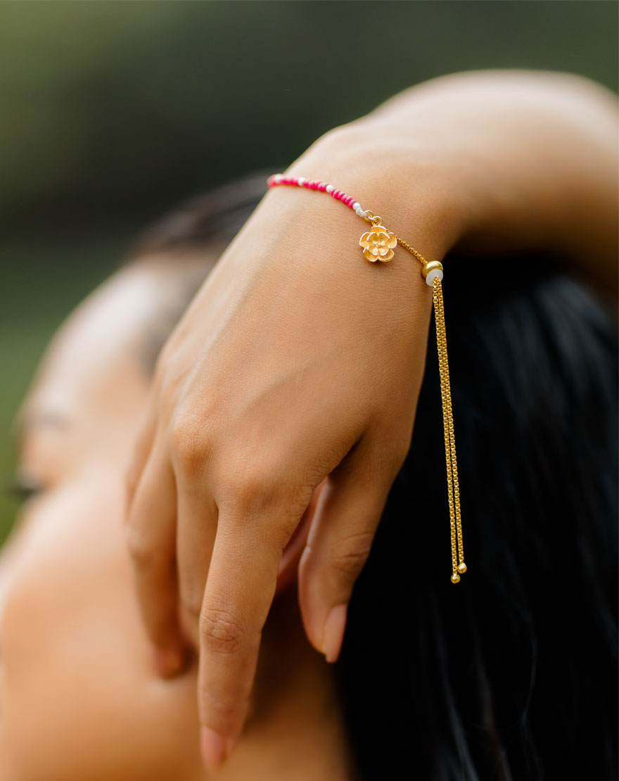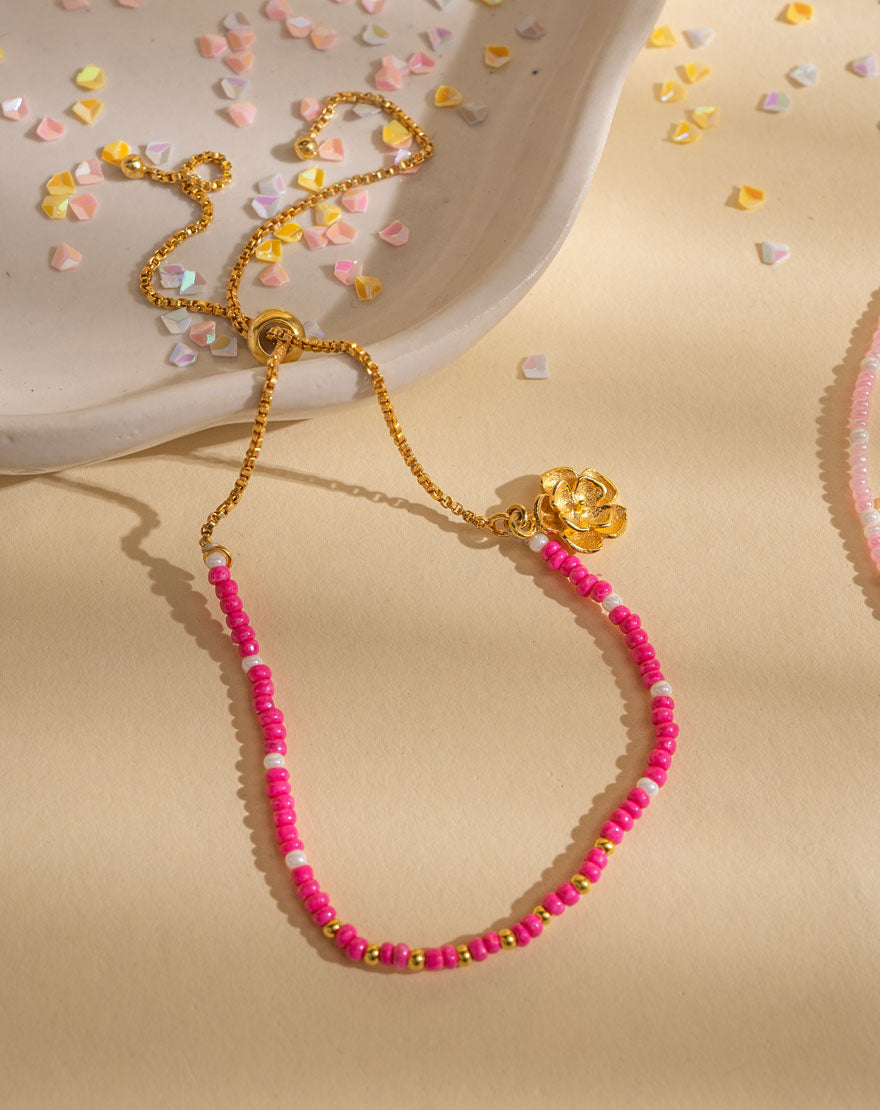 This bracelet will make a perfect arm candy for your wrists. This stunning beach vacay bracelet is handcrafted using 18k gold plated recycled brass with hot pink seed beads and a super cute floral charm will look great when paired up with your spring summer outfits or even your basic everyday outfit. This bracelet is ADJUSTABLE and will fit almost all sizes.