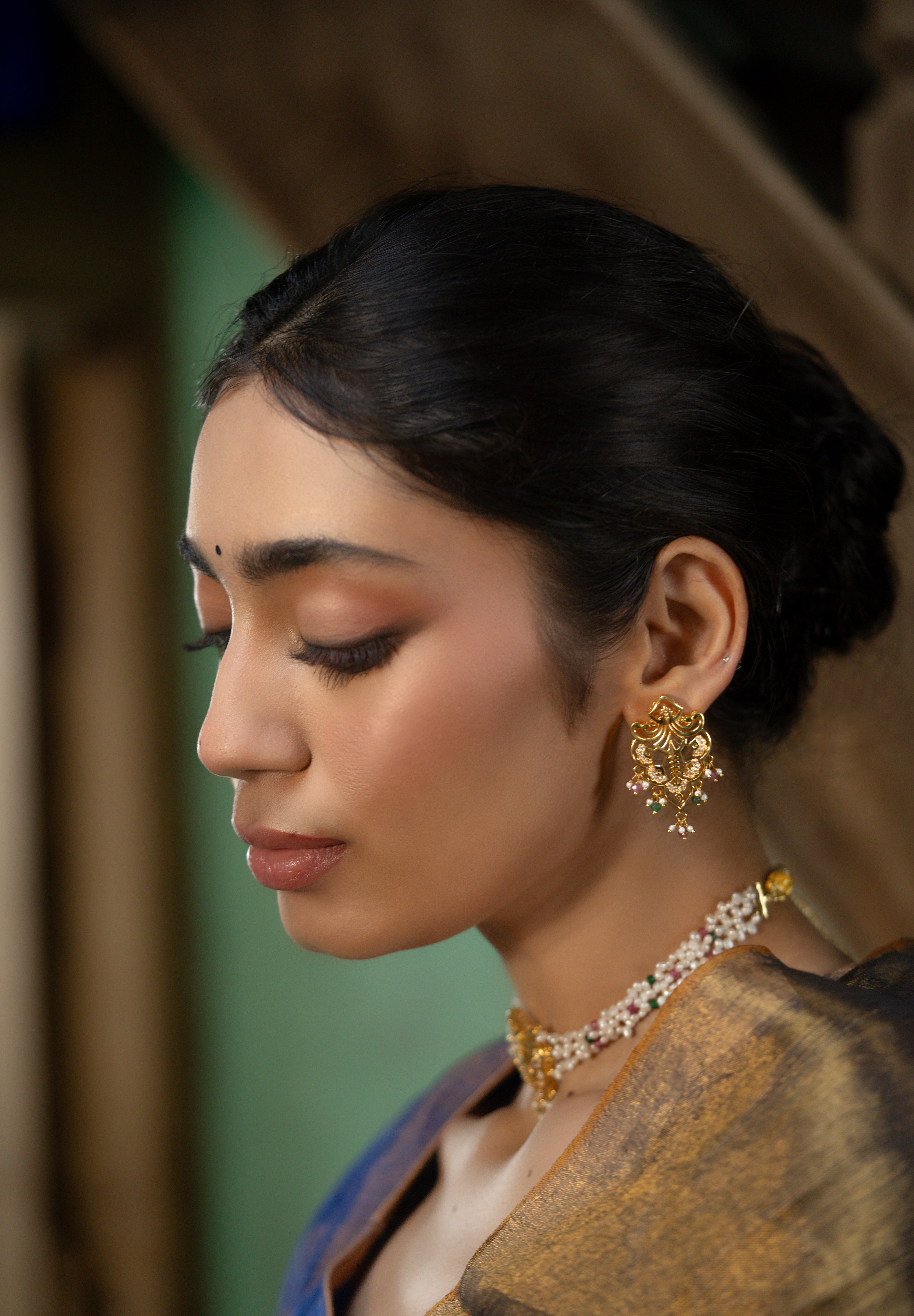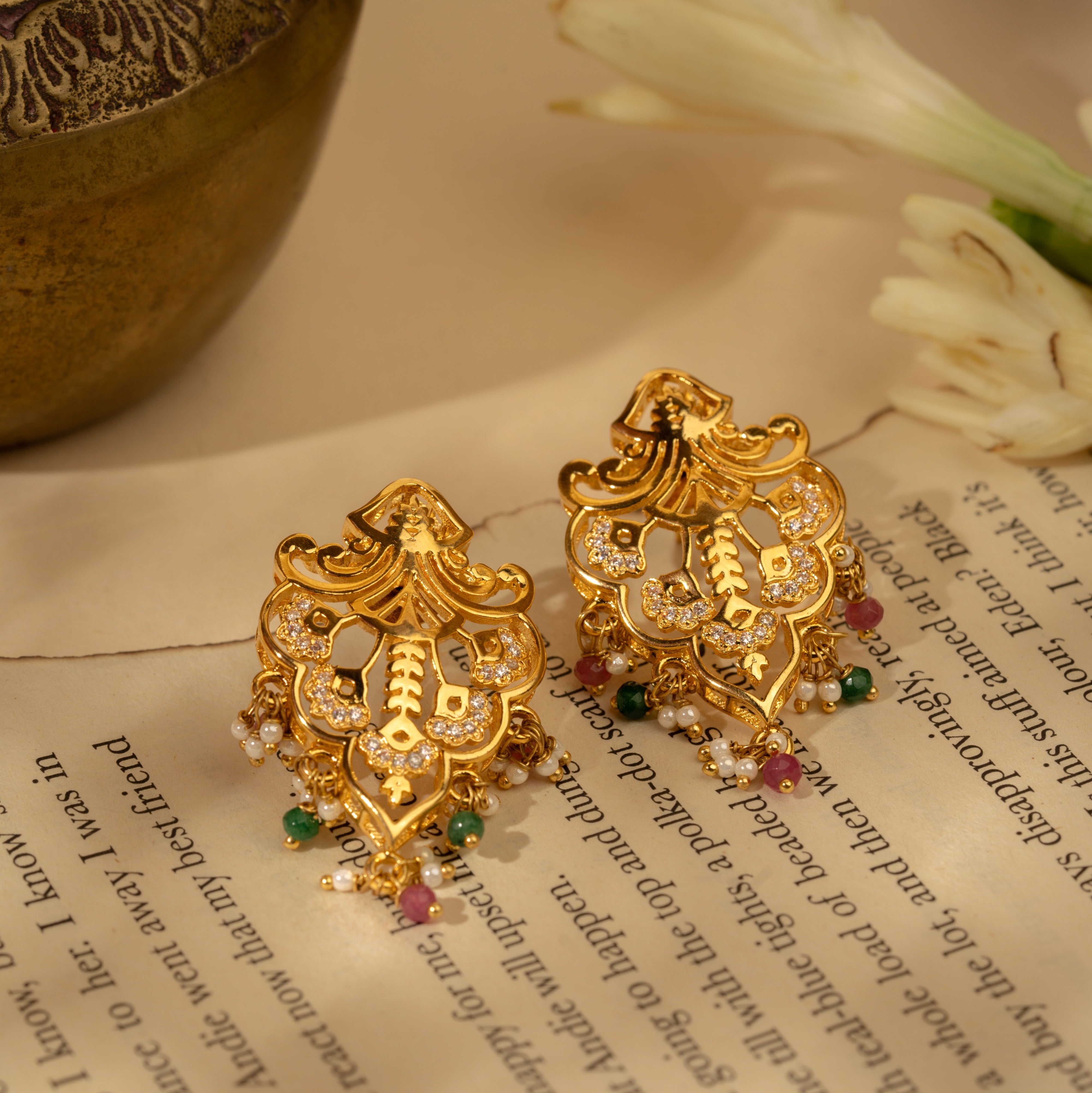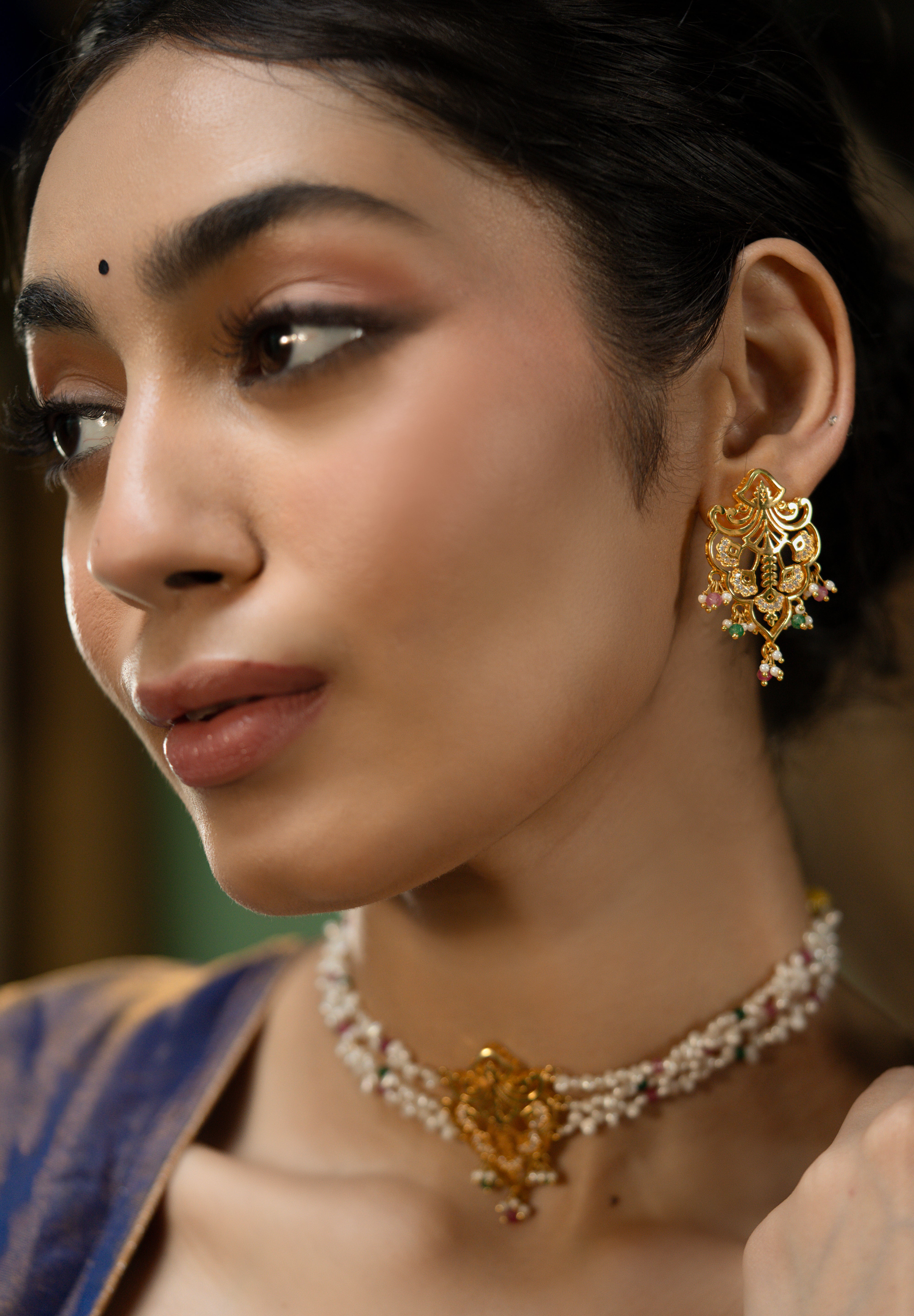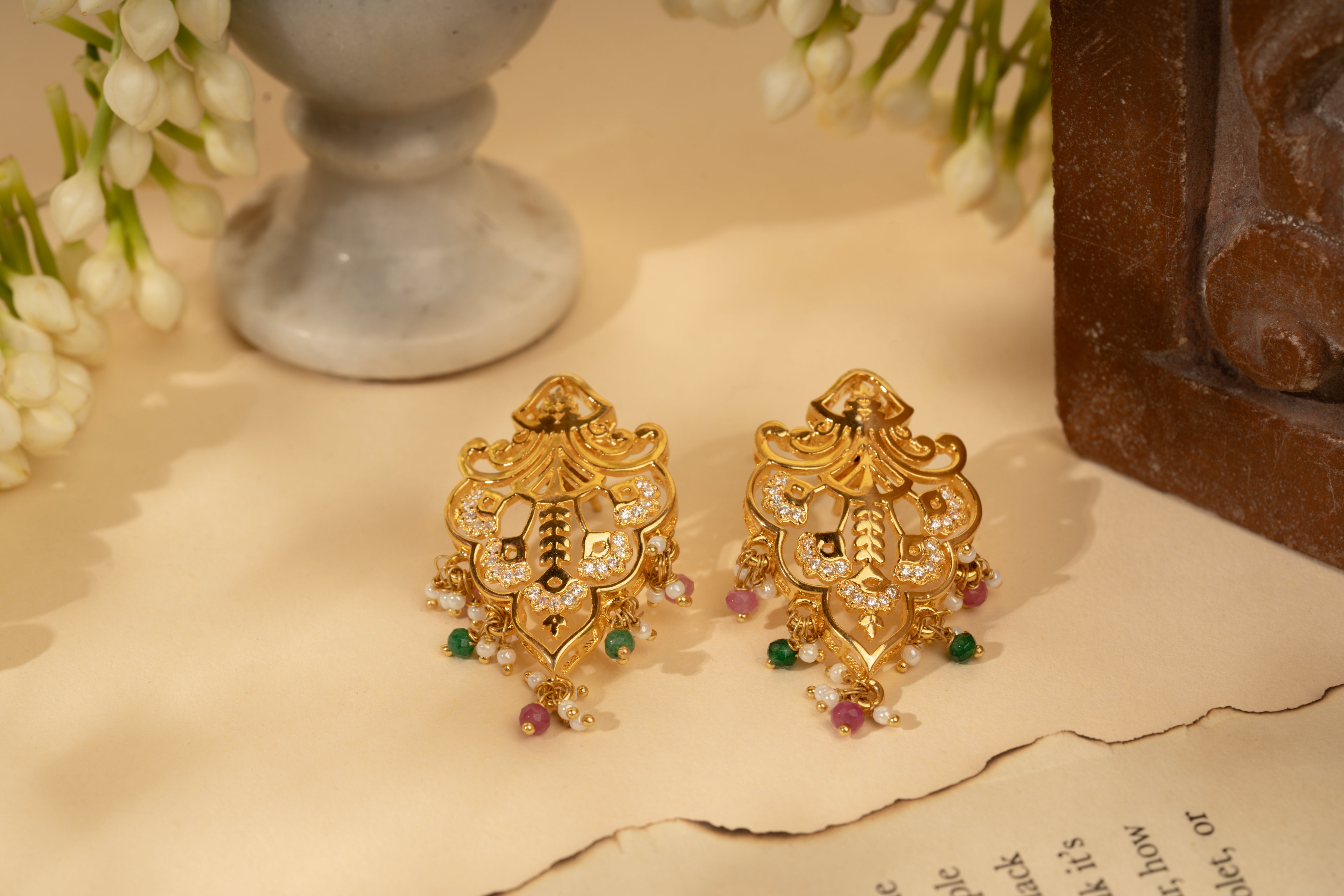 The Jahanara Earrings are a timeless statement of grace and sophistication, designed to elevate your festive ensemble with regal charm and artistic flair.
