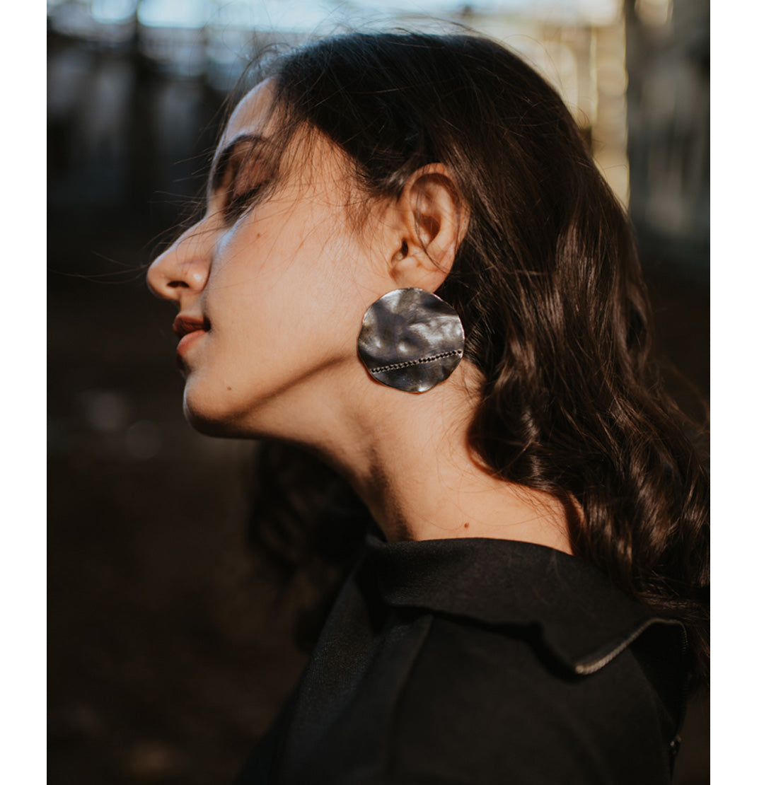 Handcrafted using silver plated brass with hammered metal technique and Swarovski stones from our limited edition collection ECHO.