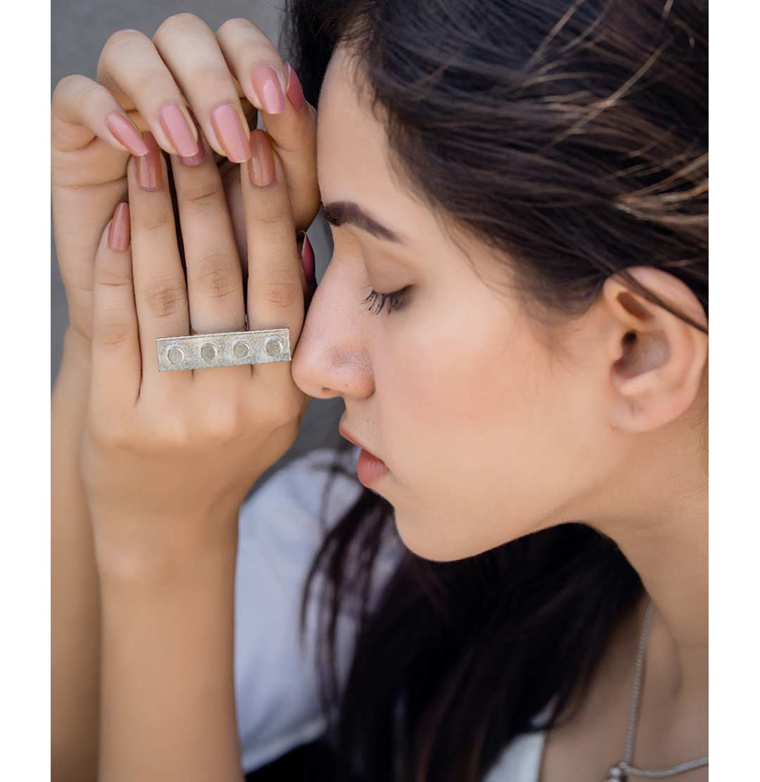 Lego Horizontal Ring Silver – Handcrafted metal ring inspired from Lego Bricks on silver plated brass, this contemporary ring goes very well with your western look and clean silhouettes. Wear and play Lego!