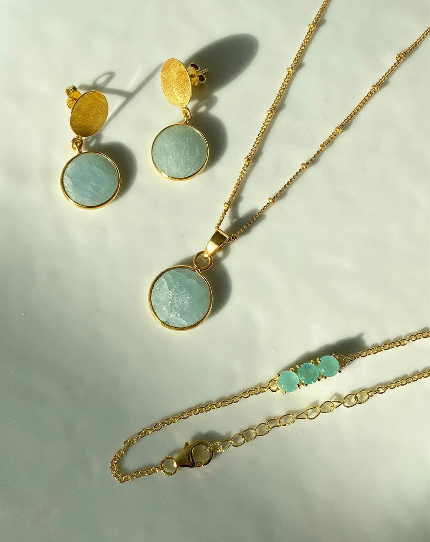 March Aquamarine Necklace + Earrings + Bracelet Combo