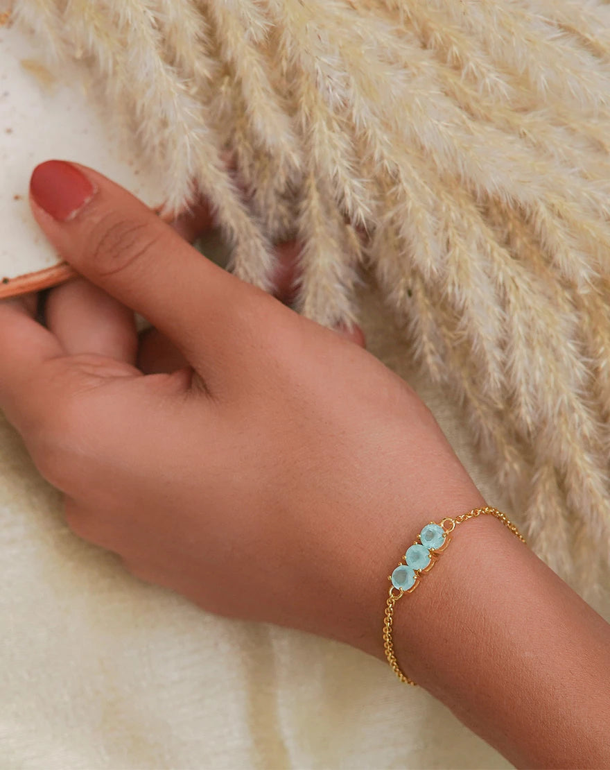 This beautiful combo of Anastasia collection of Necklace + earrings + bracelet handmade using Aquamarine birthstone, 18k gold plated 925 silver which will make a perfect gift for your loved one or just for yourself.