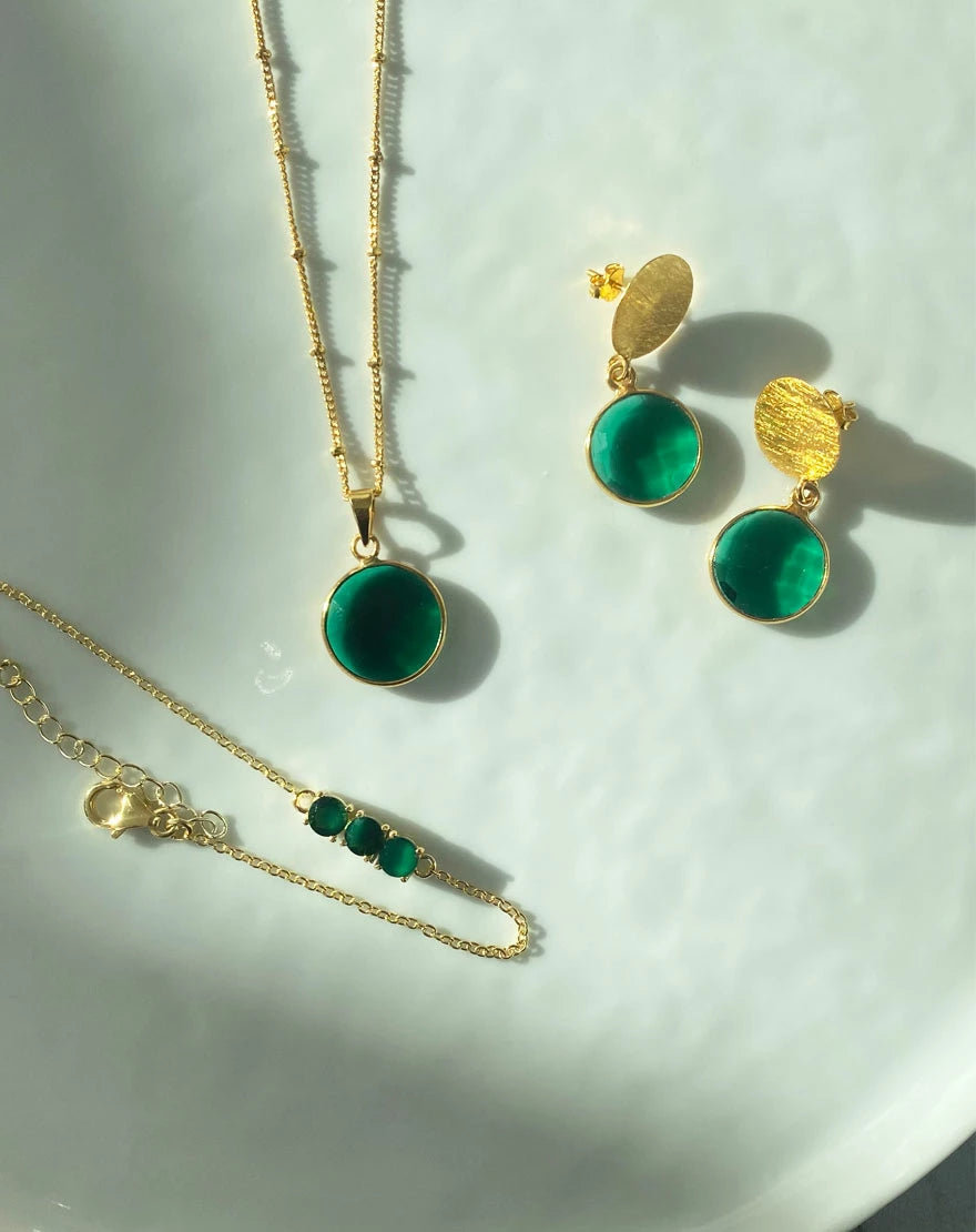 May Emerald Hydro Necklace + Earrings + Bracelet Combo