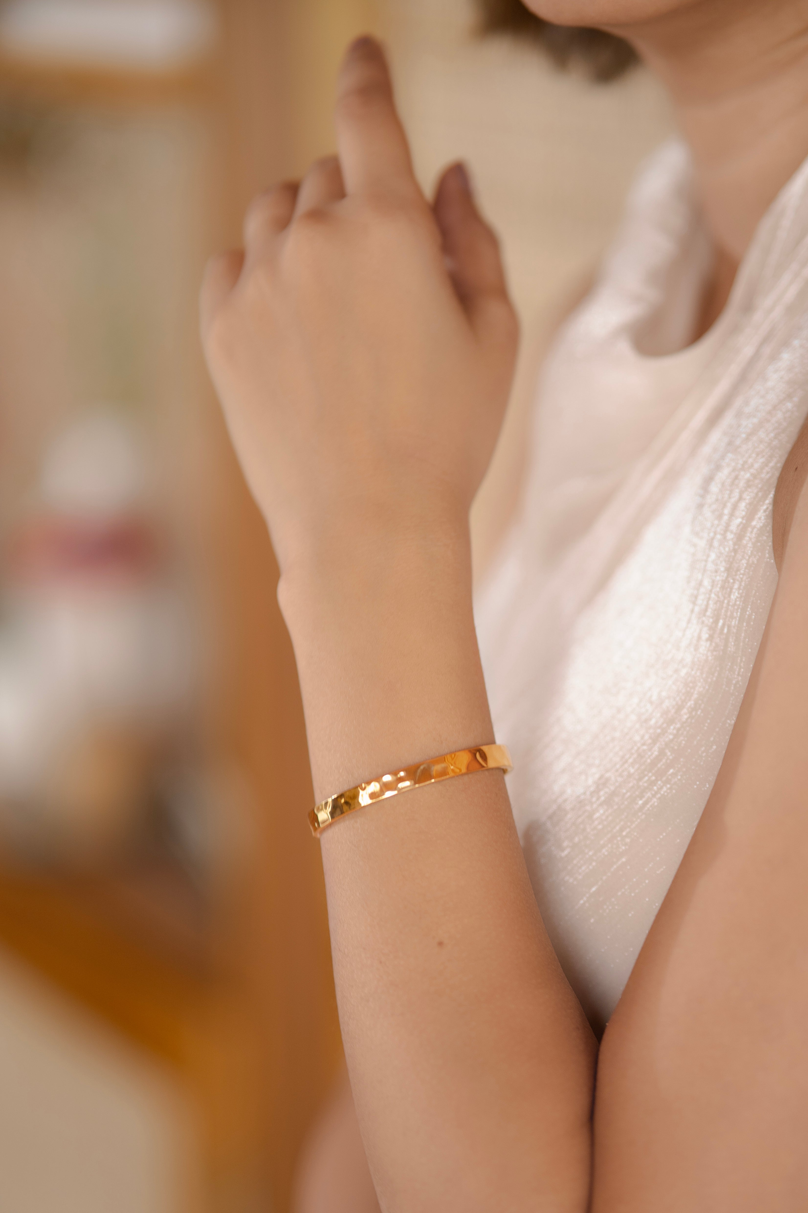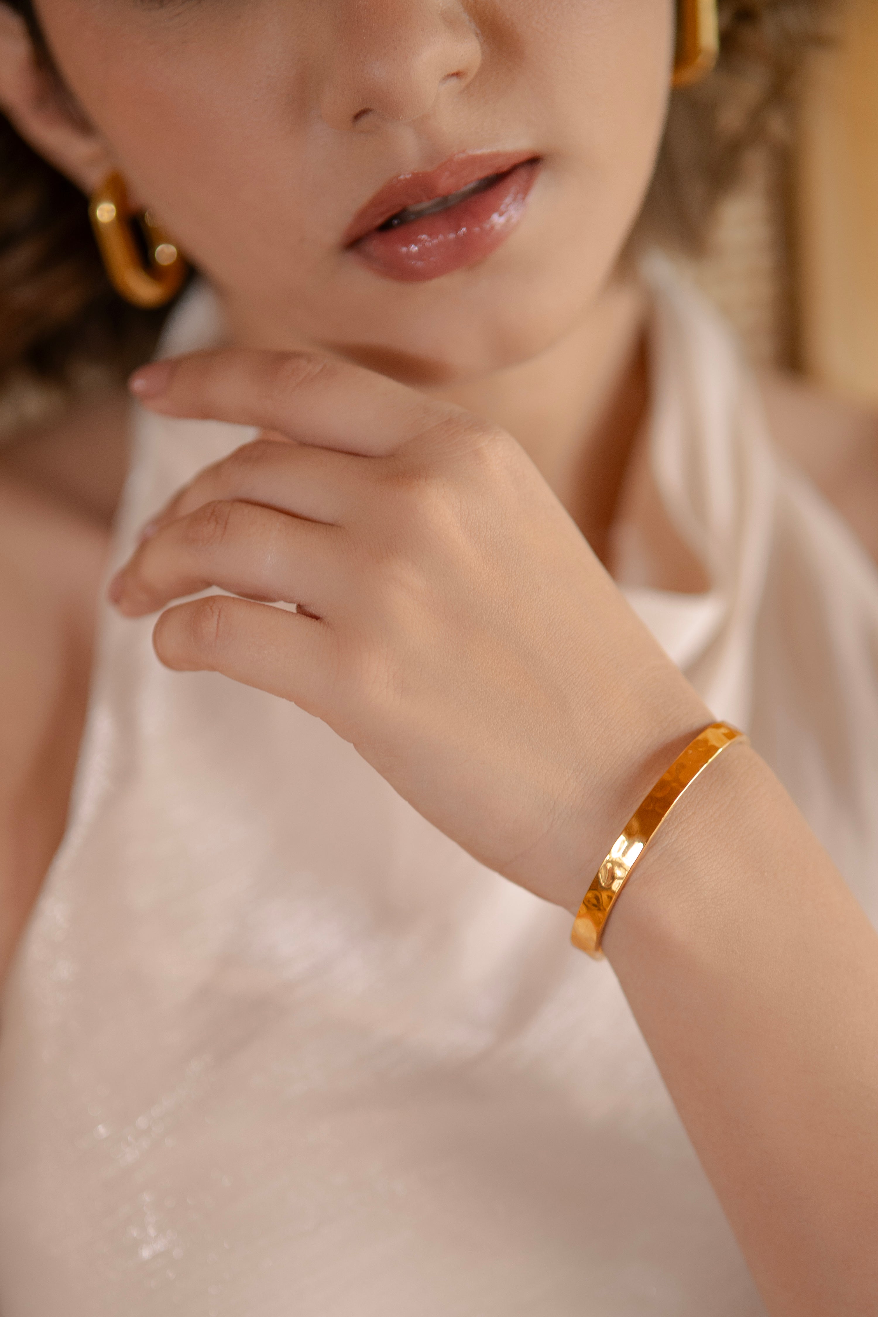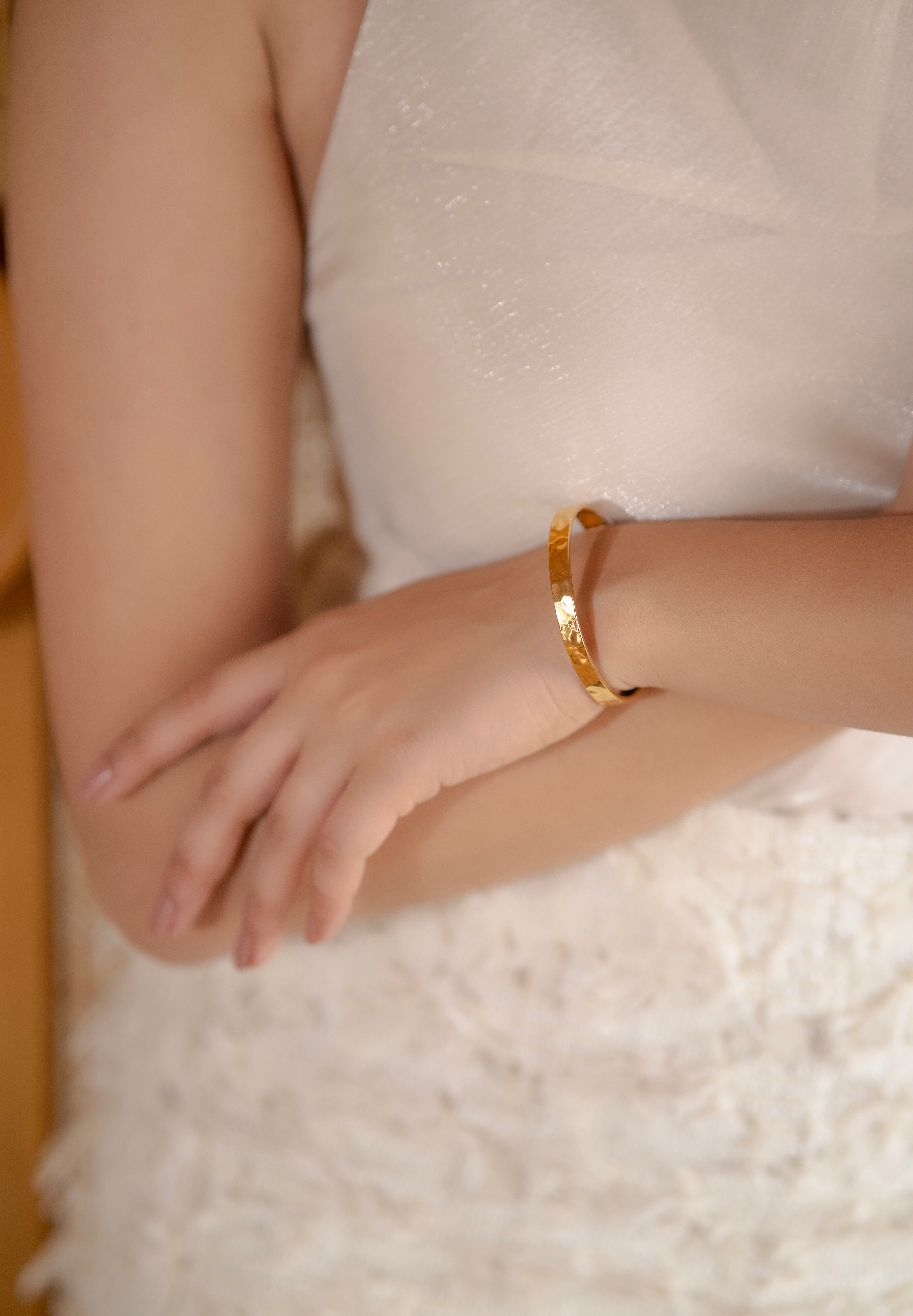 Discover our handcrafted textured bangle, made from the finest quality metal. These minimal yet versatile bangle transition effortlessly from day to night, and from casual to dressy wear. Featuring thick 2-micron gold plating, they are anti-tarnish and designed to last. Light in weight yet statement-making, this bangle is a timeless addition to any jewelry collection.
