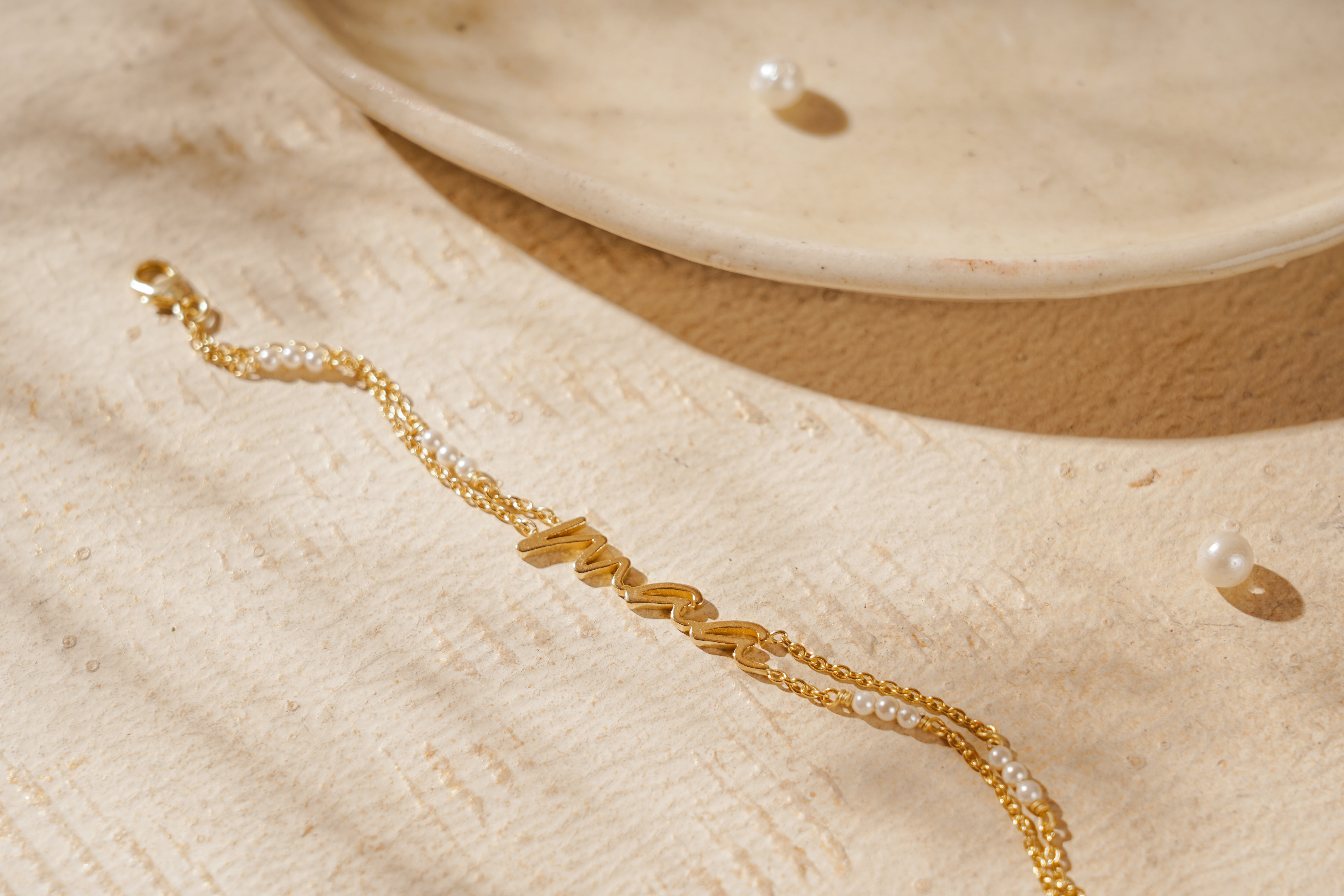 Experience the Essence of Motherhood with Our Mother of Pearl bracelet | Handcrafted Love