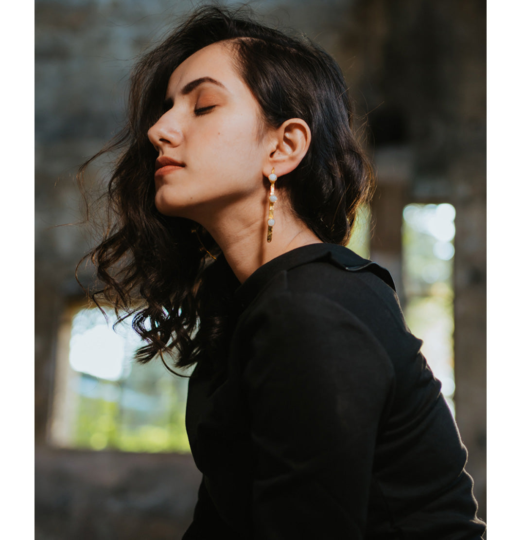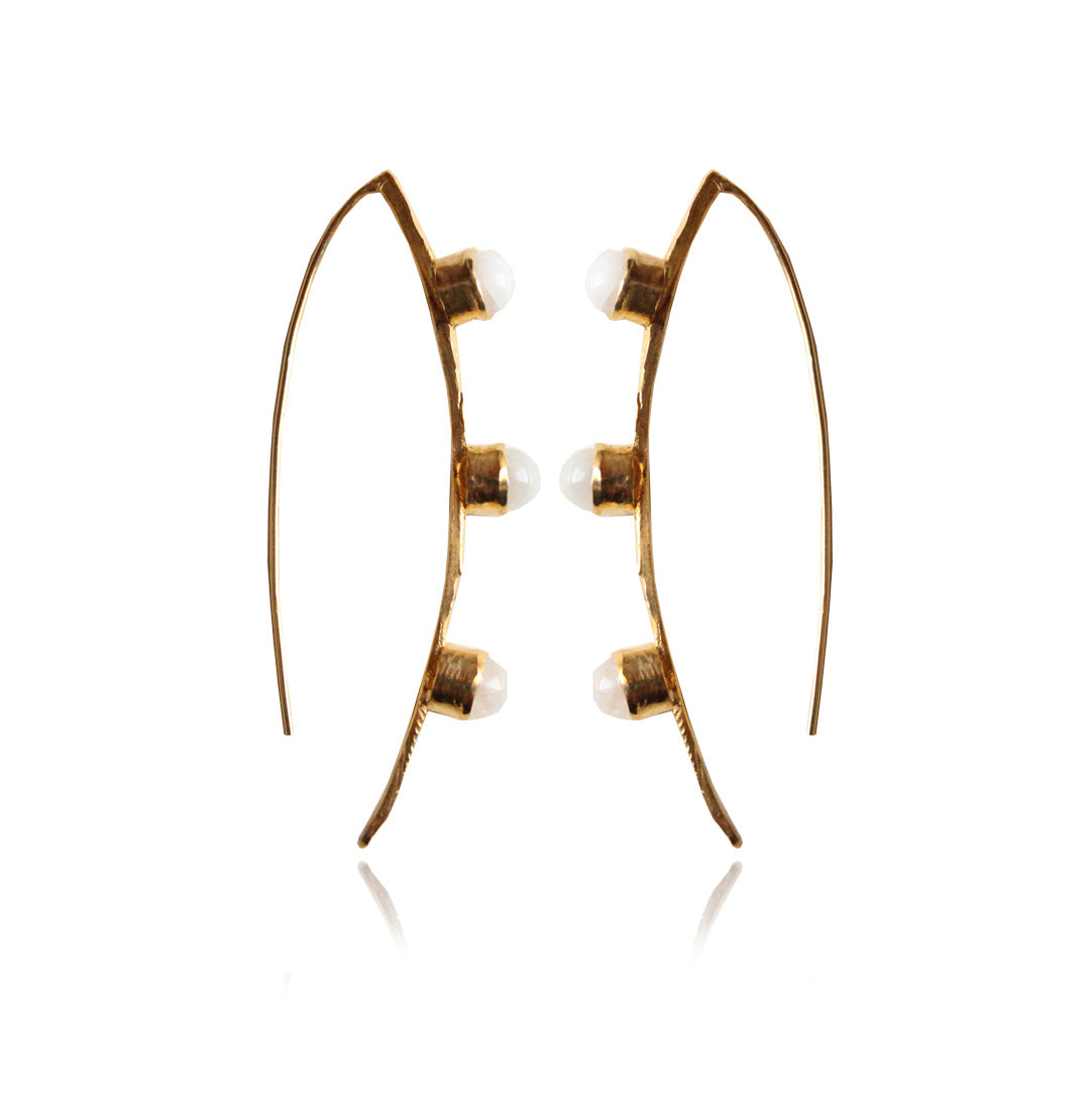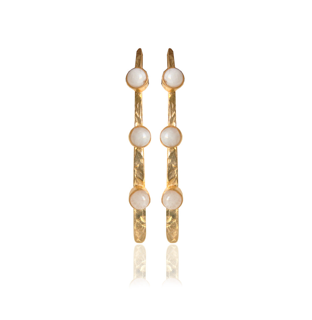 Nadya Earrings Moonstone – Handcrafted Earrings which are statement and sleek studded with beautiful semiprecious stones such as moon stone in gold plated brass.