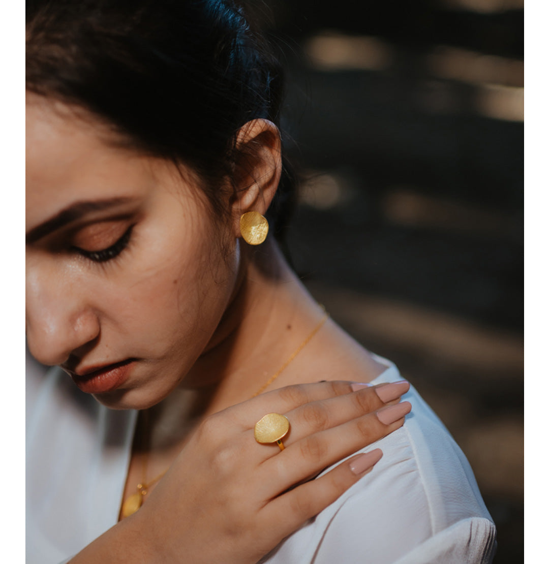 Olivia Studs – Beautiful everyday wear dainty stud earrings inspired from a lotus leaf handcrafted using pure silver 925 and 18k gold plated.
