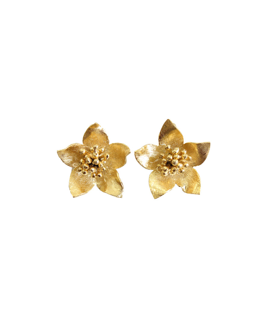 Periwinkle Studs : Statement metal studs handcrafted using gold plated 3D floral motif, a perfect pair of statement studs for contemporary style lovers.