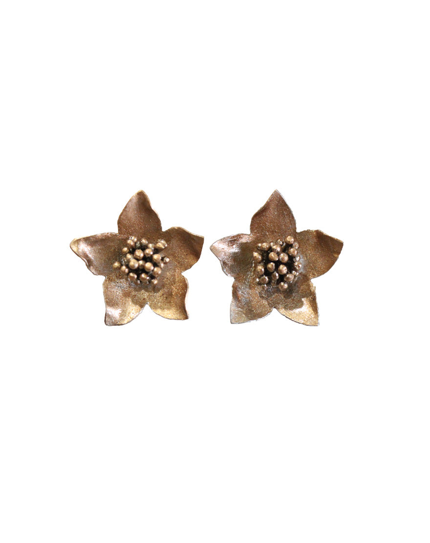 Periwinkle Studs : Statement metal studs handcrafted using gold plated 3D floral motif, a perfect pair of statement studs for contemporary style lovers.