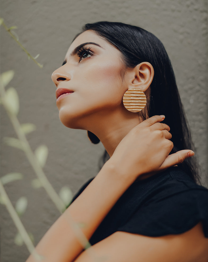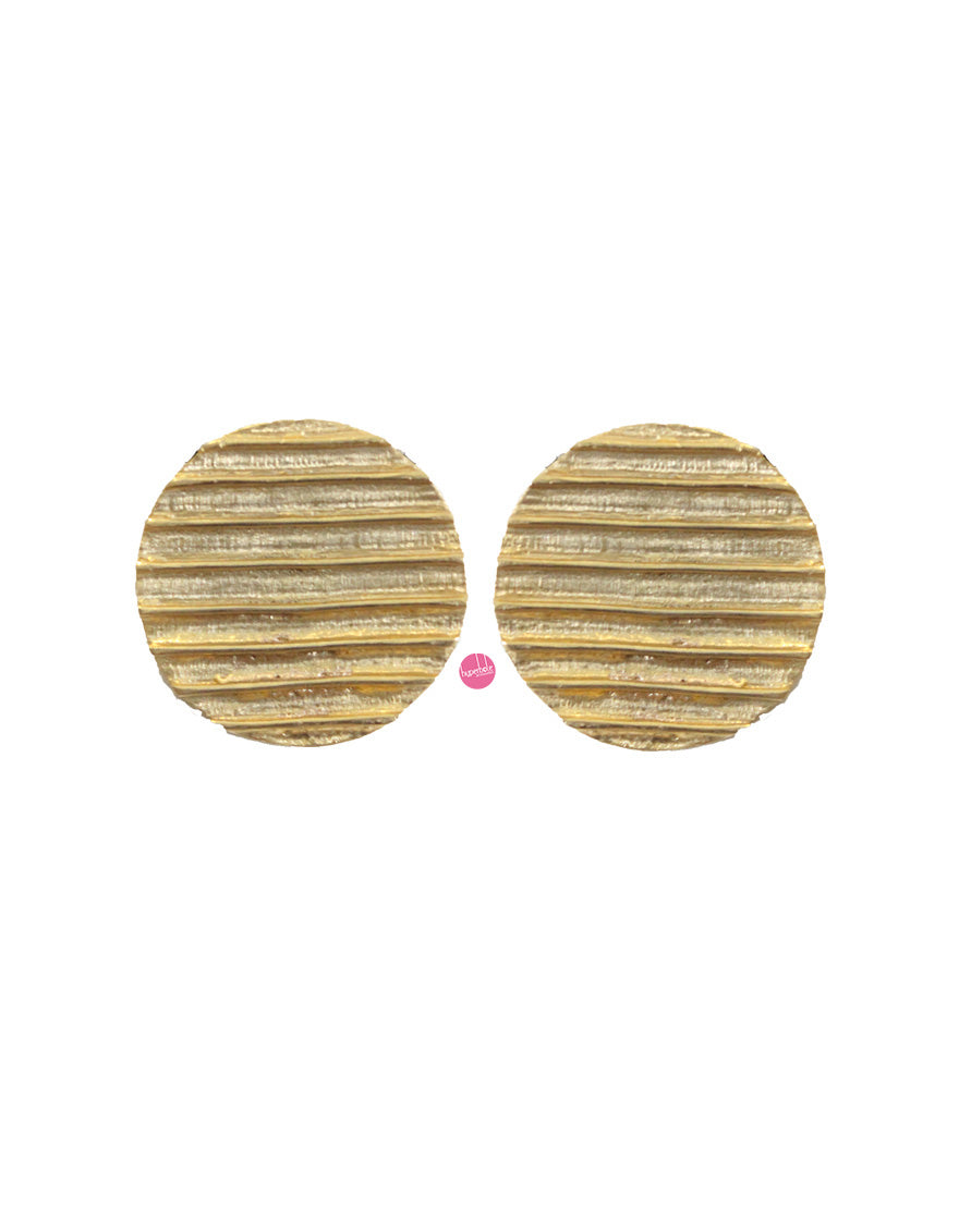 Raw Circle Studs (Gold) : Handcrafted statement with lineated texture on copper plated brass giving it a bold and raw look