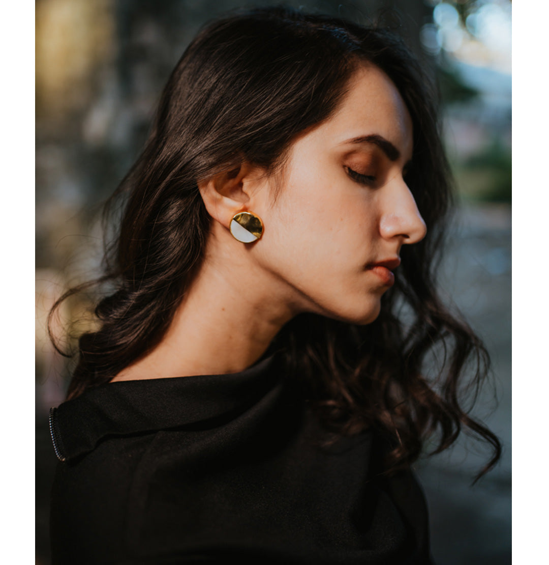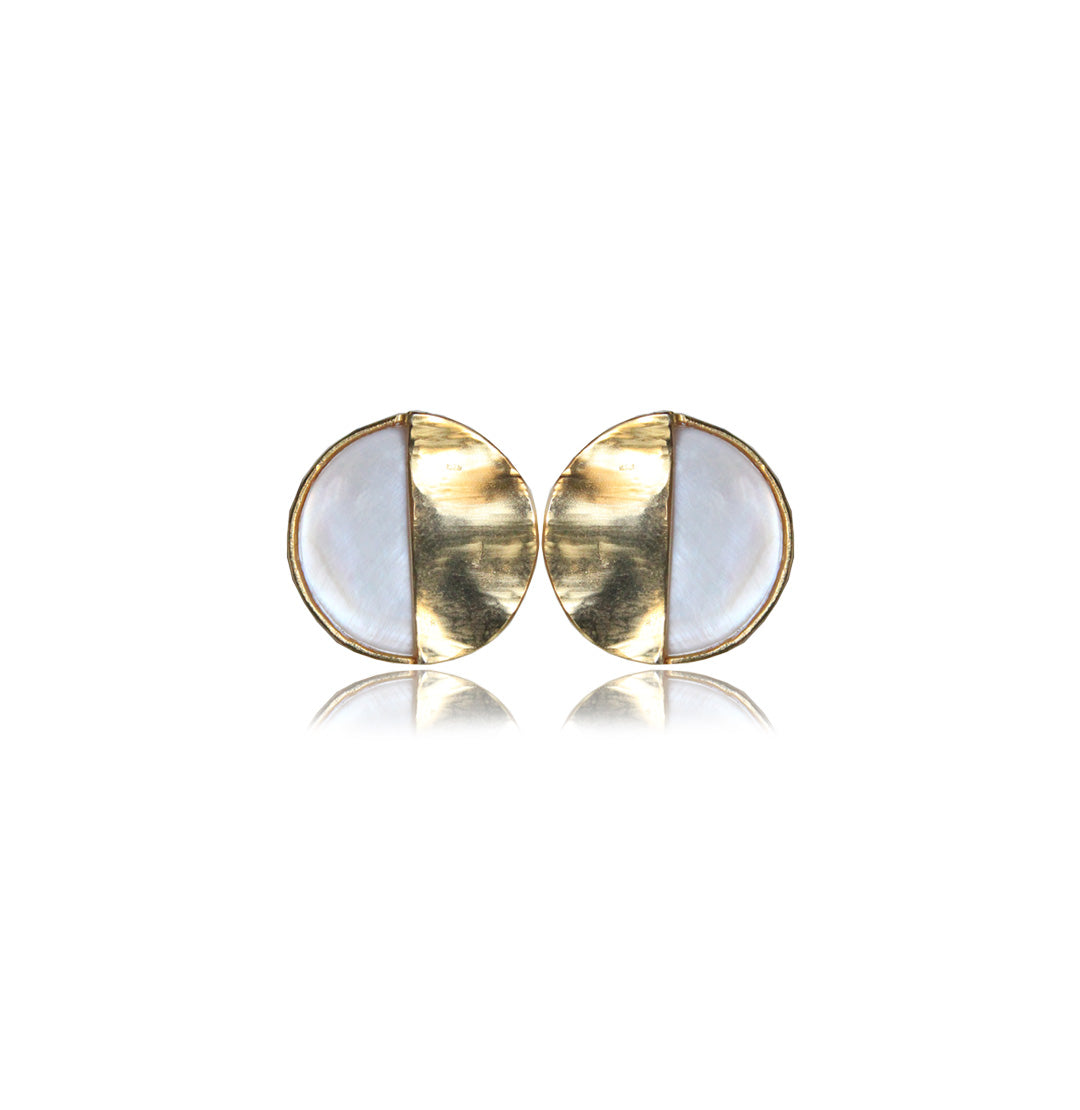 Serena Studs Small – Handcrafted statement making studs made using 1 micron gold plated brass covered on the natural mother of pearl shell. From our limited collection ECHO.