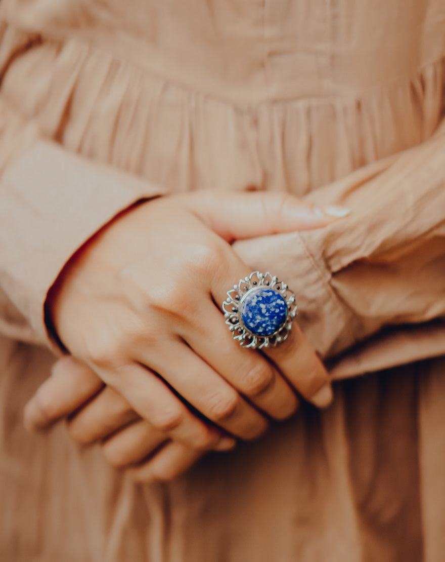 Silver Bloom Ring - Lapis Lazuli