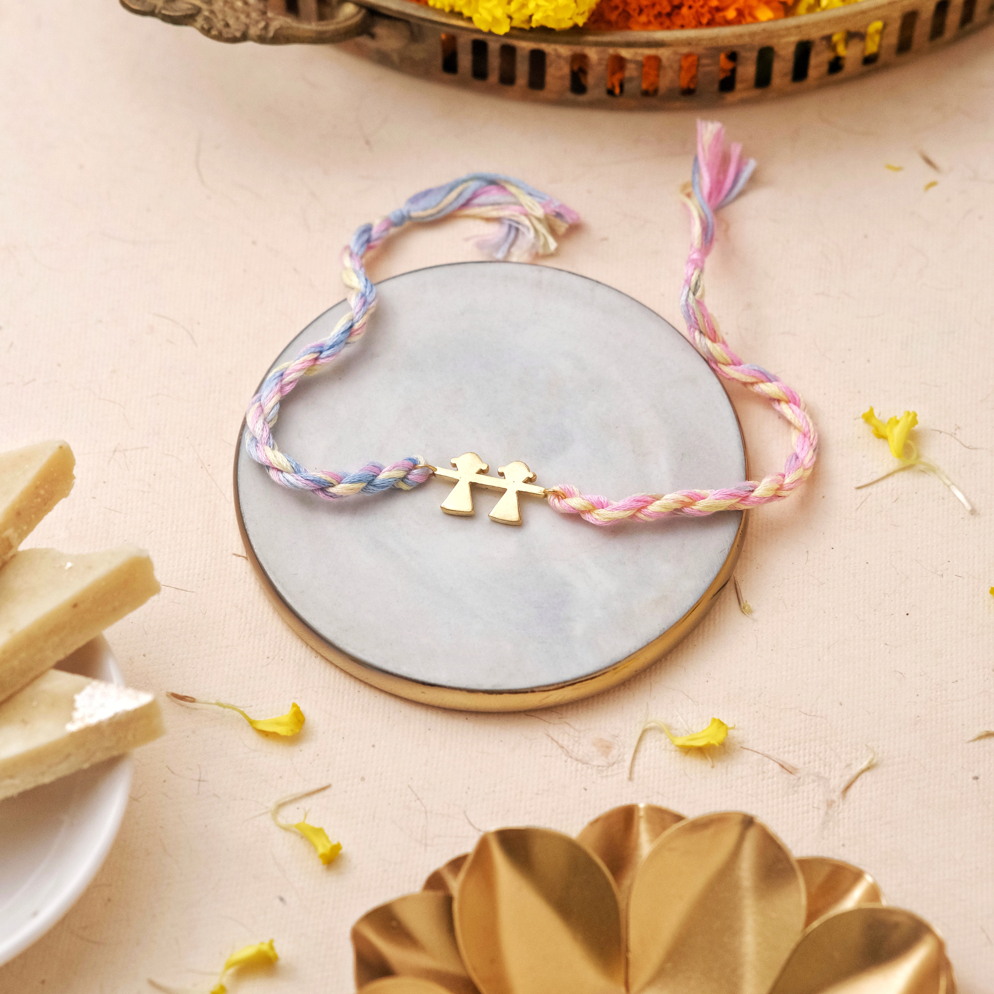Celebrate the special bond between sisters with our enchanting Sisterhood Rakhi, designed just for little girls. Inspired by the charming paper doll concept, this Rakhi features delicate figures holding hands, symbolizing the strong and loving connection between sisters.