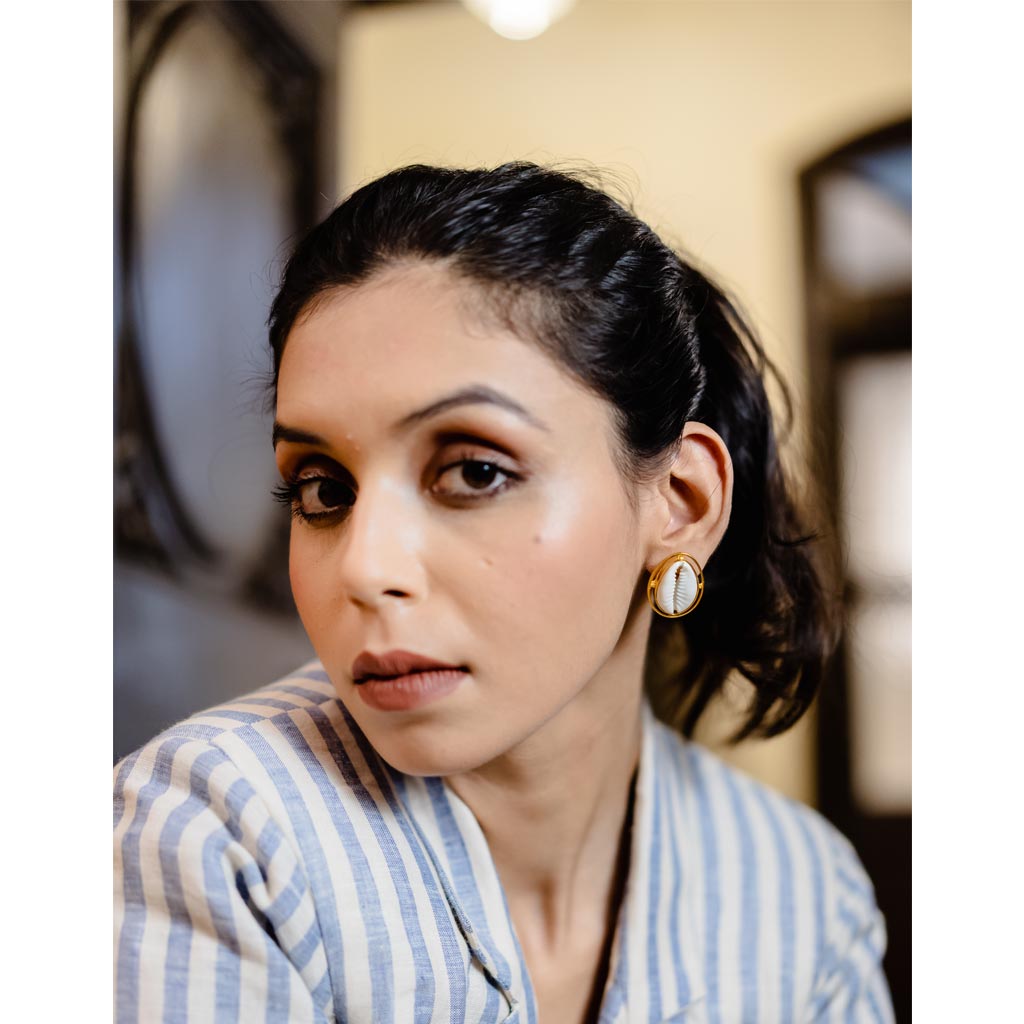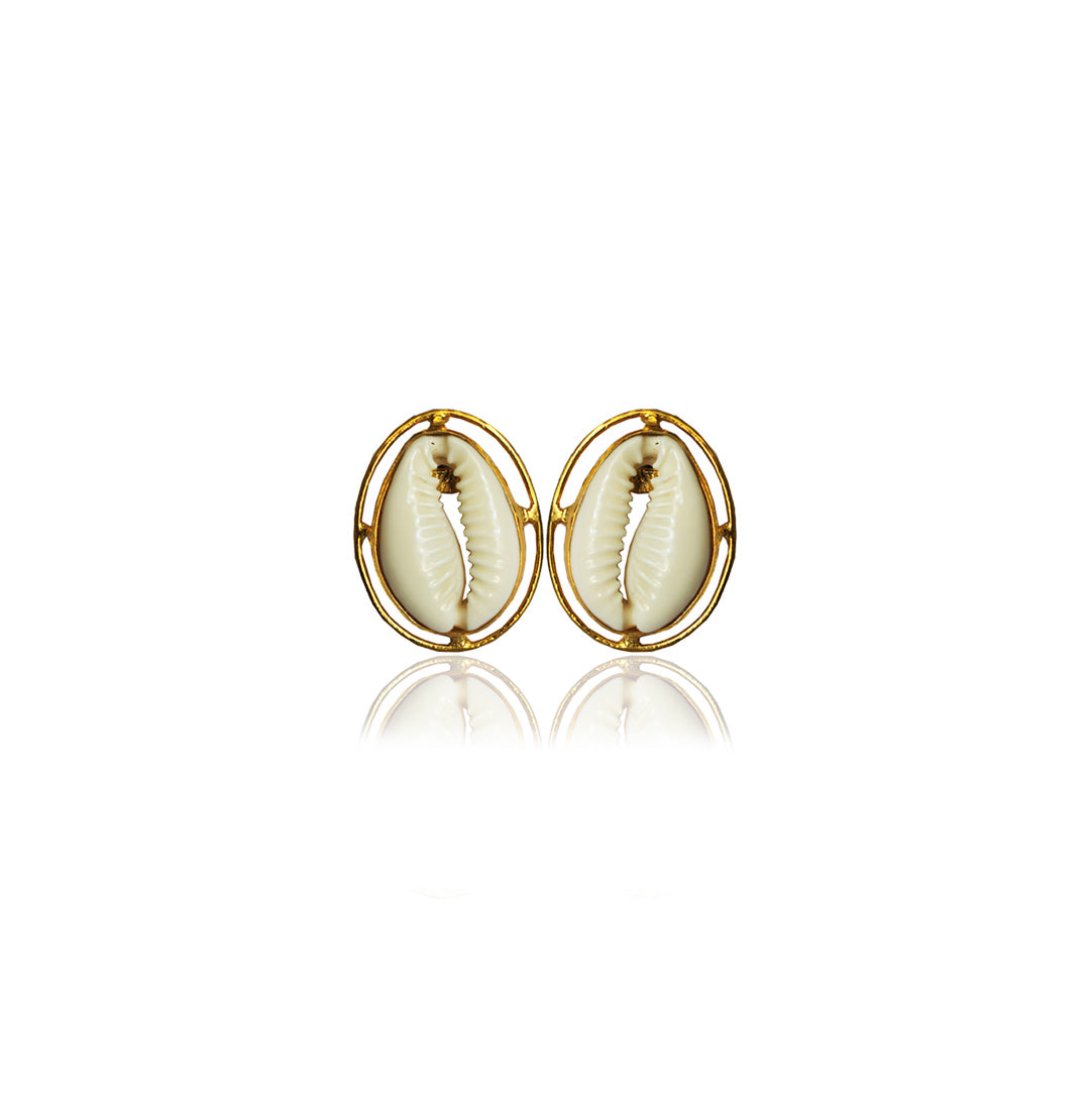 Summery Shell Studs : Handcrafted summery studs, made using cowrie shells on 1 micron gold plated brass. A perfect breezy pair of earrings for your beach vacation.
