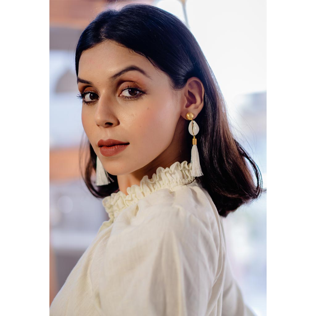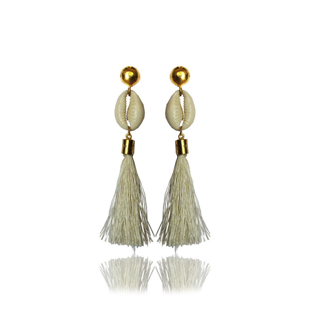 Summer Shell Tassels – Handcrafted summery earrings made using cowrie shells and thread tassels, statement making yet feather light in weight, perfect for a beach vacation.