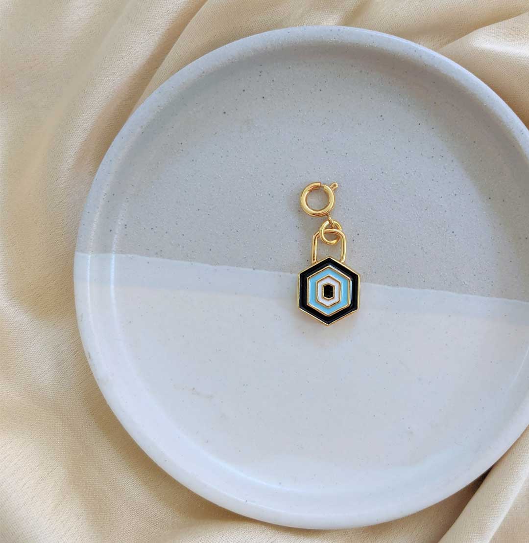 A beautiful handcrafted charm made with 1 micron gold plated brass (18k gold tone) with hand painted enamel, is so versatile that you can add it to anything, be it a chain, bracelet or any other hoop earrings. A perfect gifting charm or something just for yourself as a keepsake.