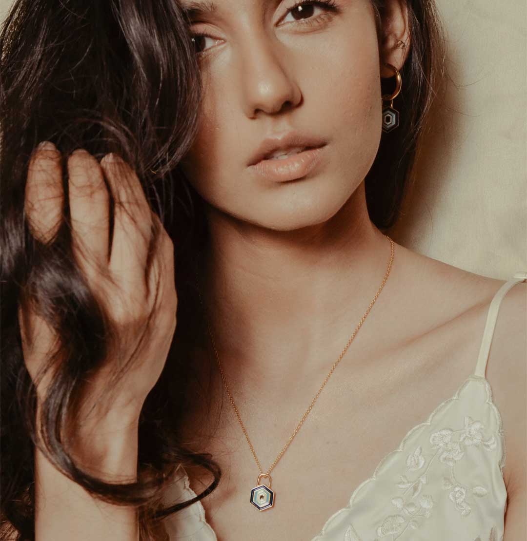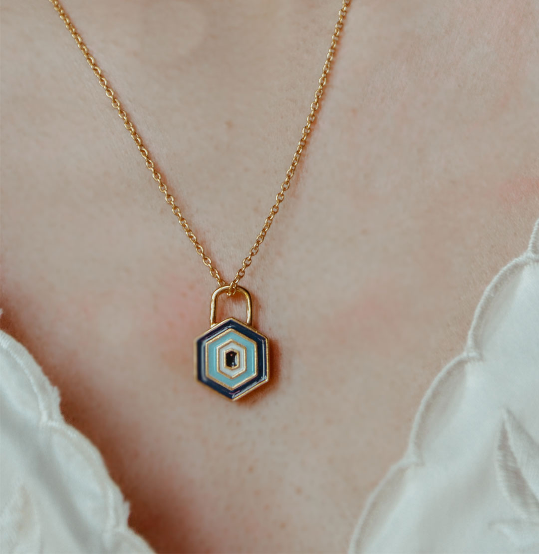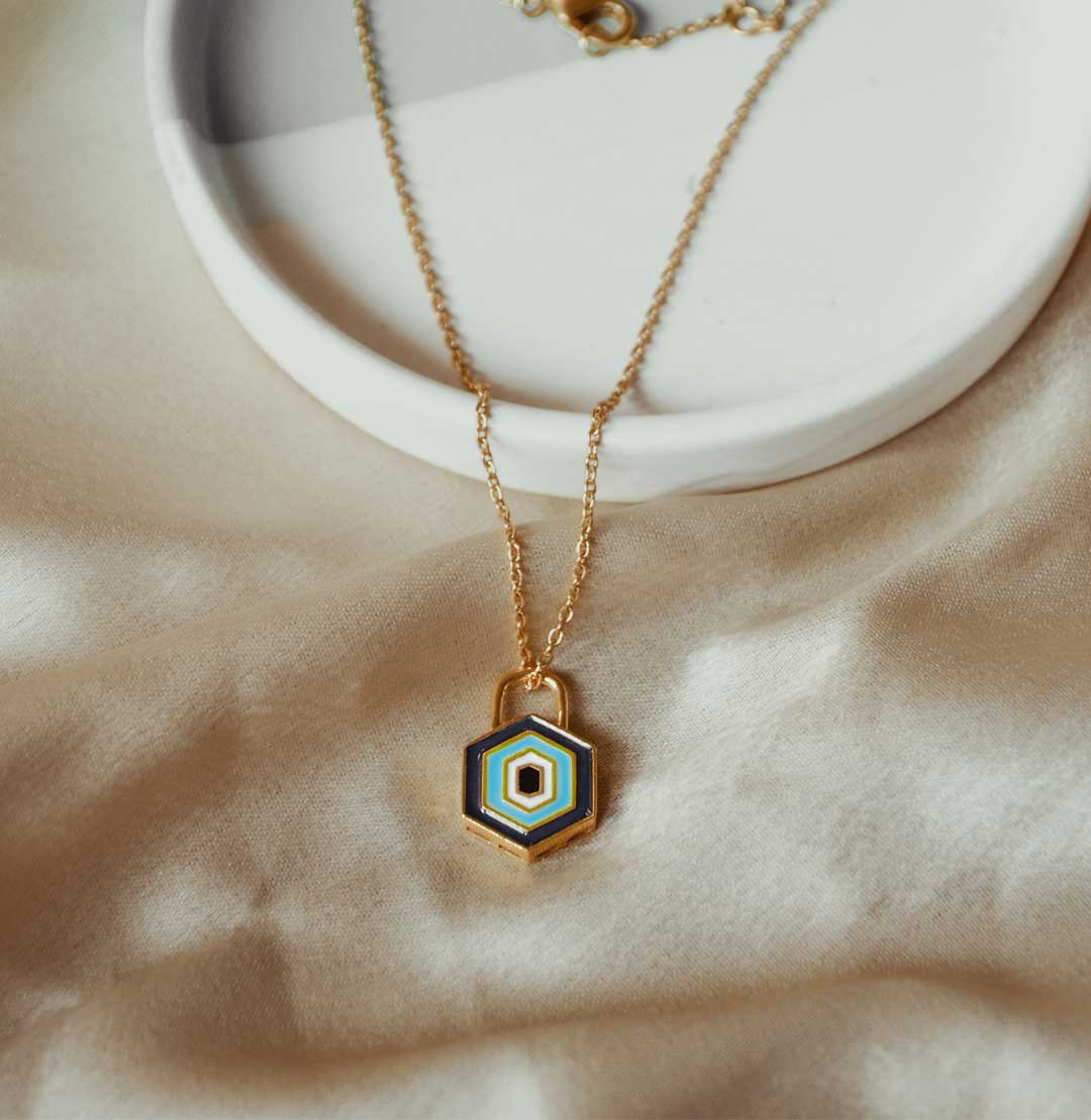 Beautiful handcrafted necklace inspired from the evil eye is made using 1 micron gold plated brass (18k gold tone) with hand-painted enamel, is a perfect necklace for gifting or just for yourself.