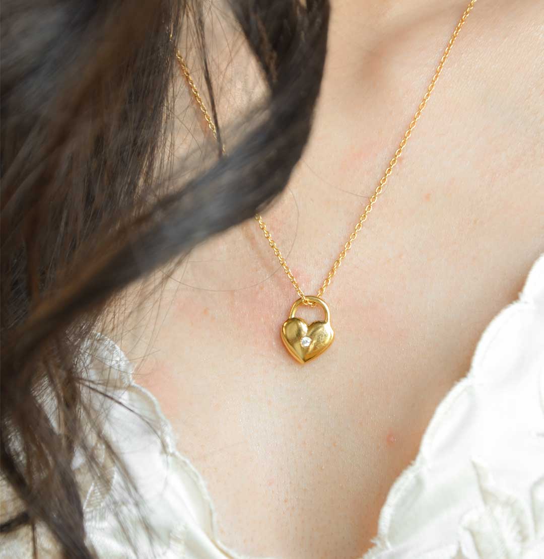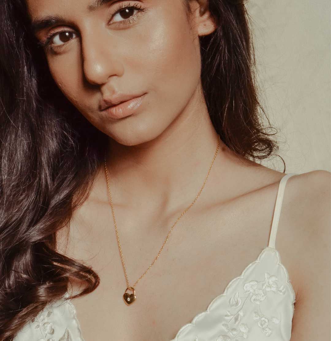 Beautiful handcrafted necklace using 1 micron gold plated brass (18k gold tone) with a fine white cubic zirconia stone, is a perfect necklace for gifting or just for yourself.