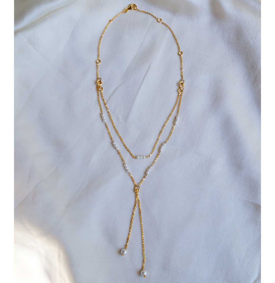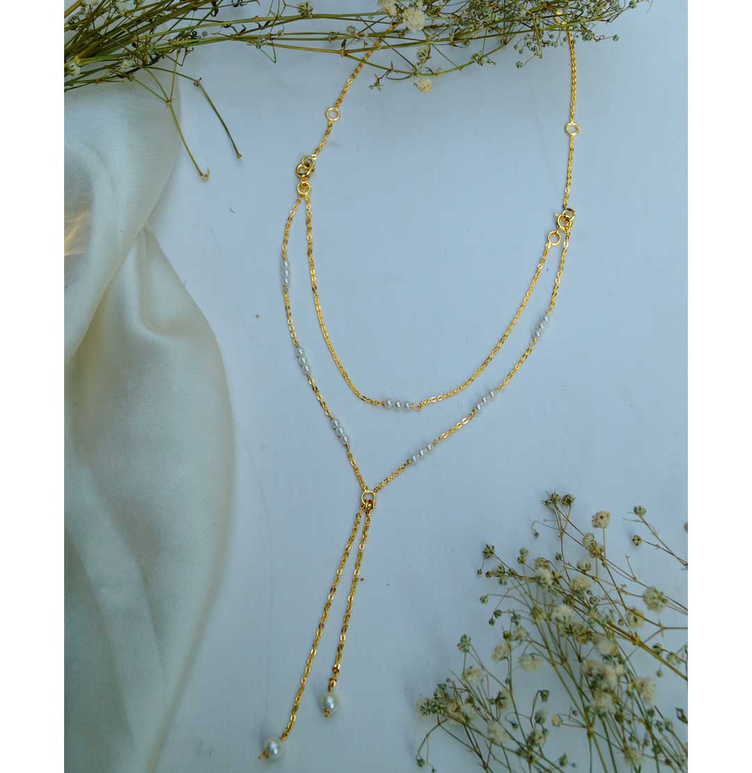 Tiffany Pearl Necklace – Its a beautiful and classic pearl necklace which is a must have for your wardrobe. It is hand made with rice pearls and 22k gold plated sterling silver chain.