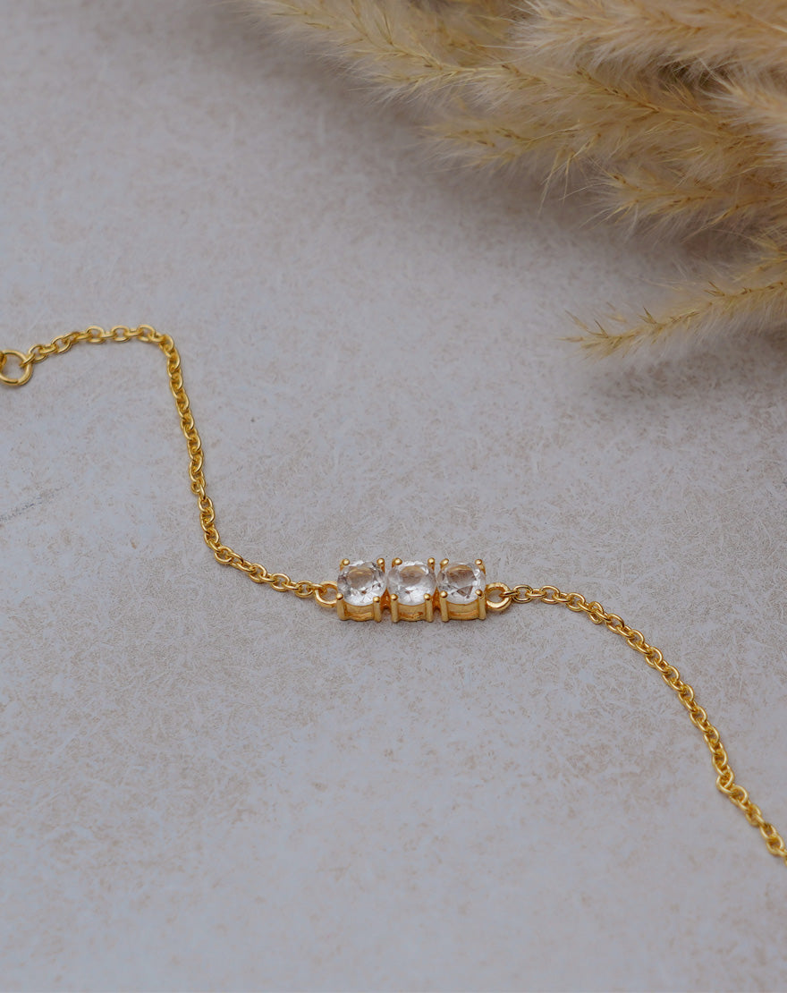 Zoe Bracelet – Delicate handcrafted bracelet made using gold plated sterling silver and Crystal stone perfect for everyday wear.