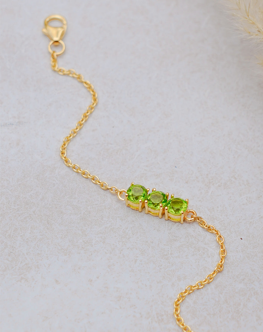 Zoe Bracelet – Delicate handcrafted bracelet made using gold plated sterling silver and Peridot stone perfect for everyday wear.