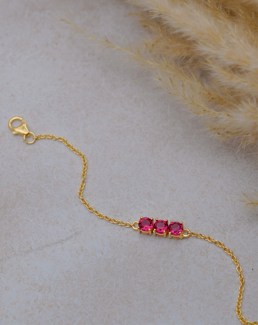 Zoe Bracelet – Delicate handcrafted bracelet made using gold plated sterling silver and Pink Tourmaline stone perfect for everyday wear.